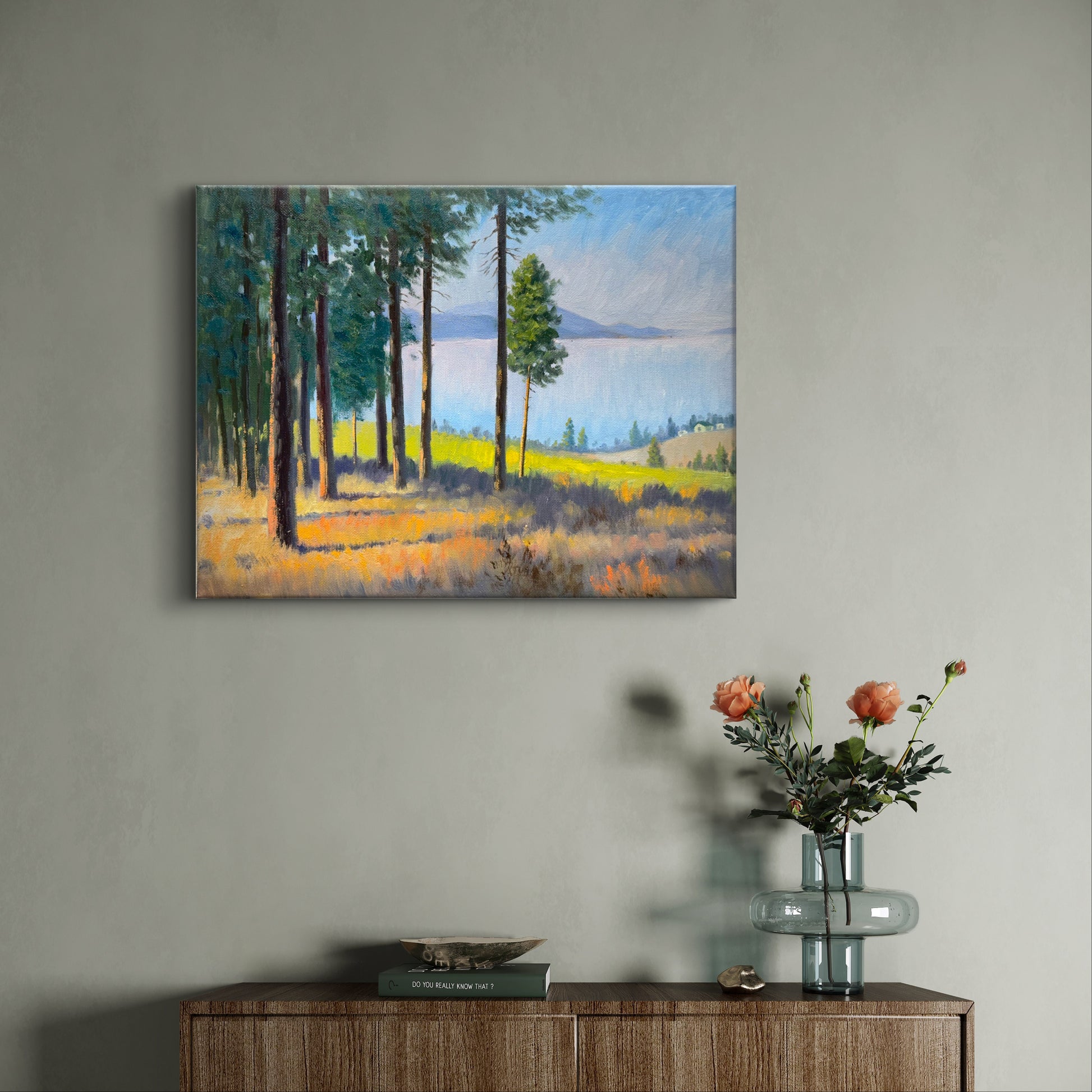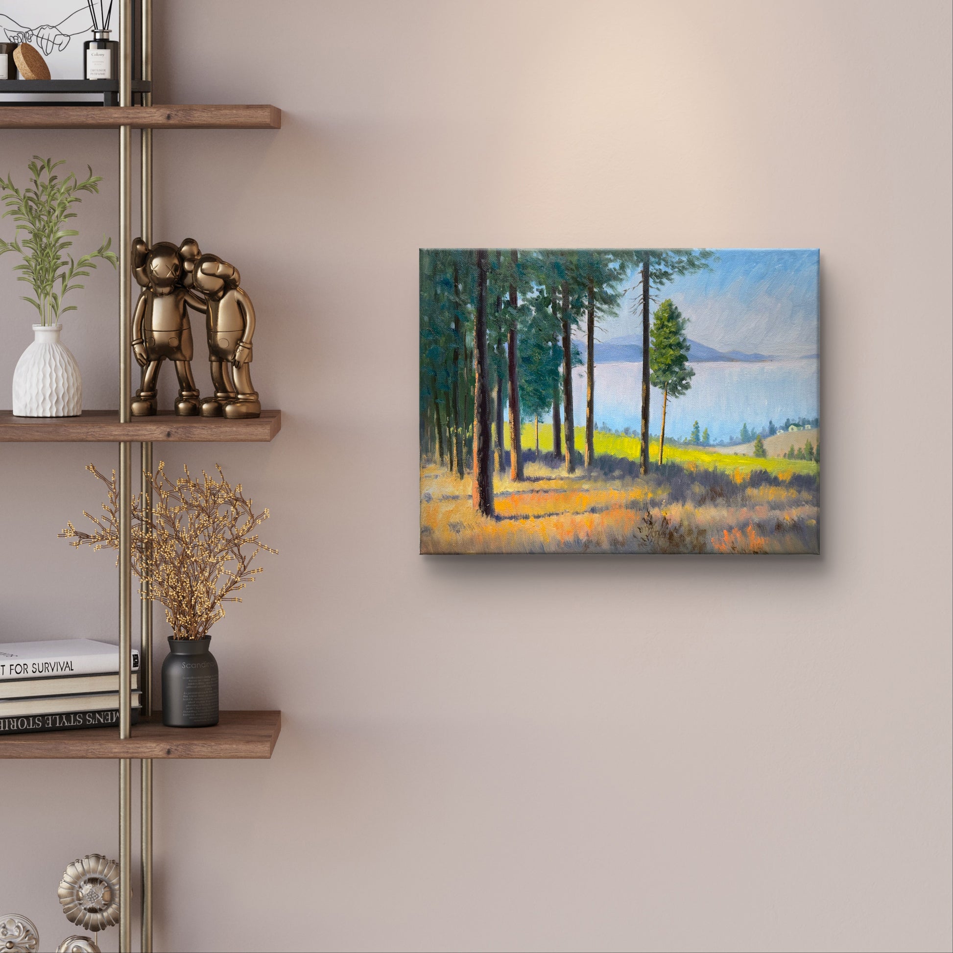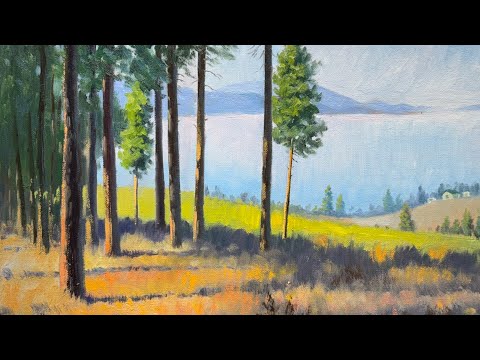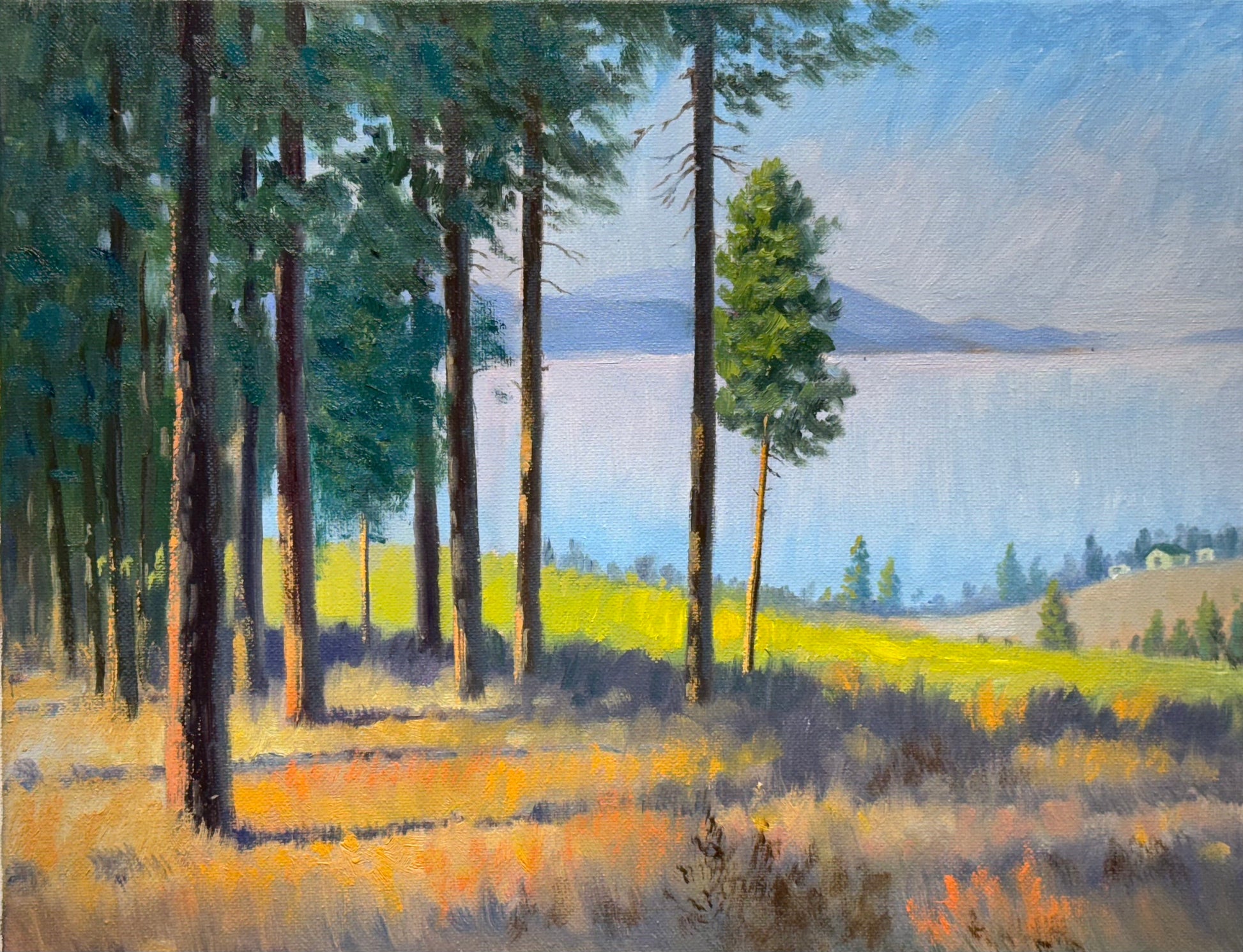 Through The Pines to the Okanagan Lake- hand painted original oil painting on canvas without frame home decor