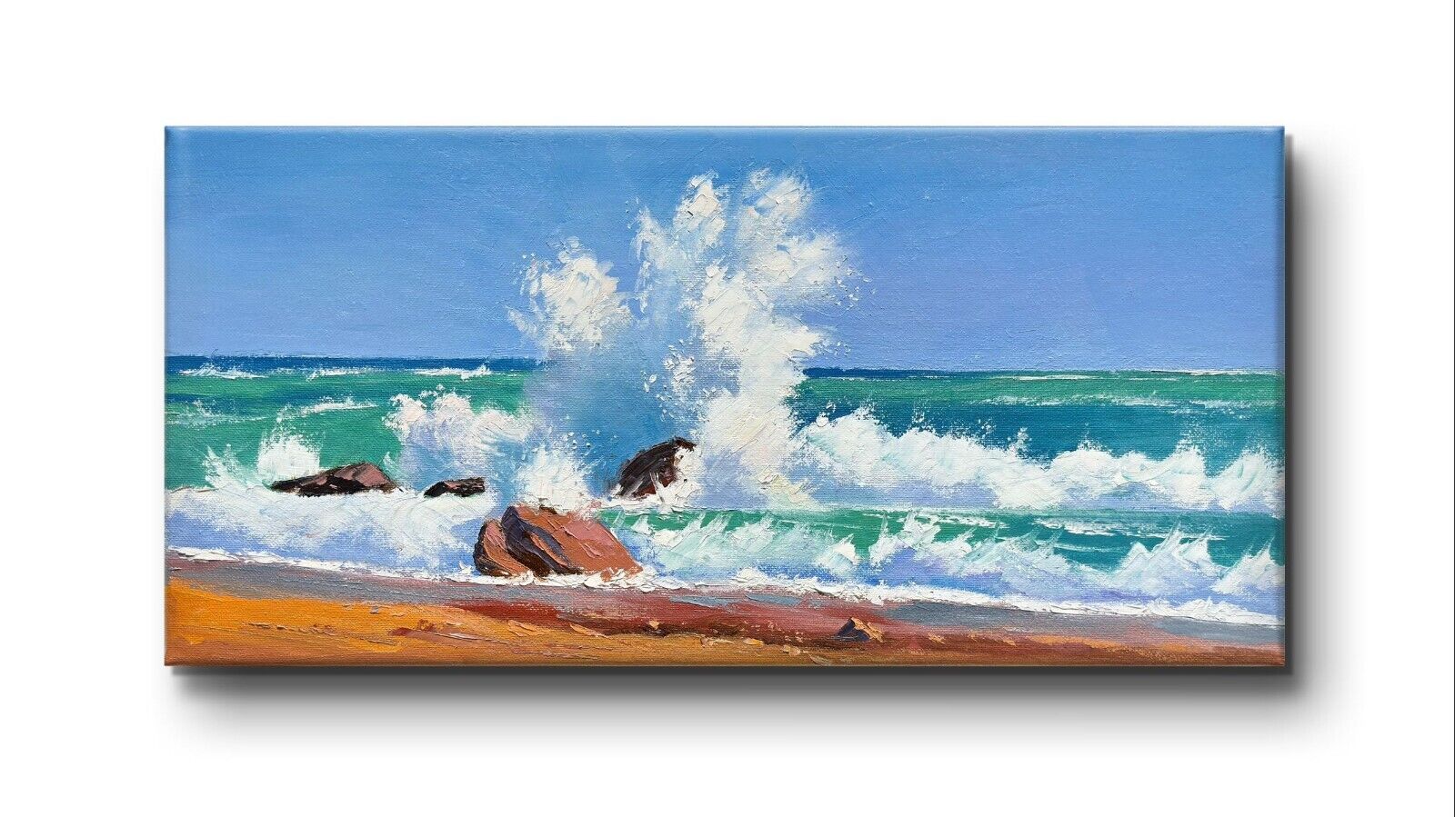 10'x20"Handmade original seascape oil painting on canvas wall art living room decor