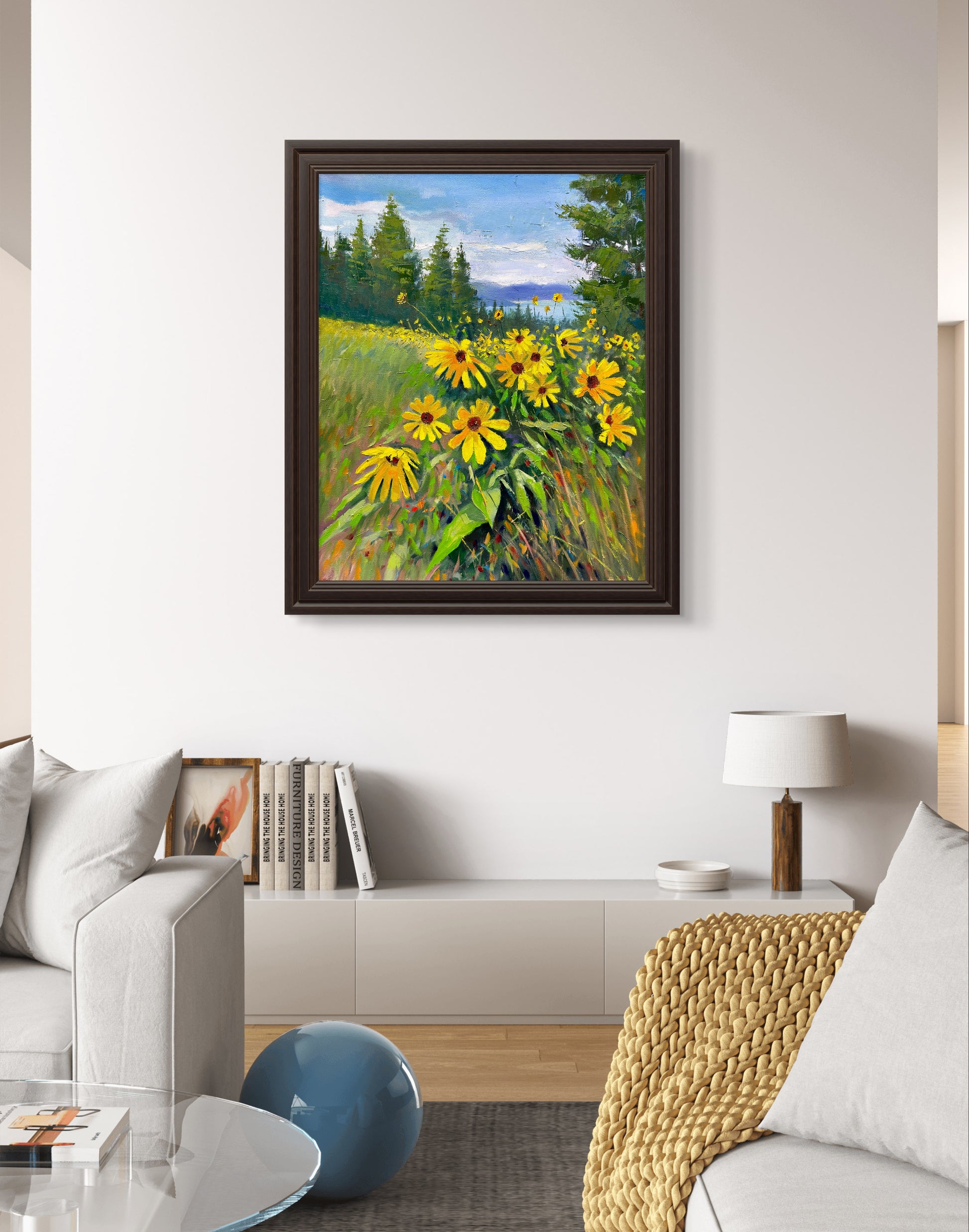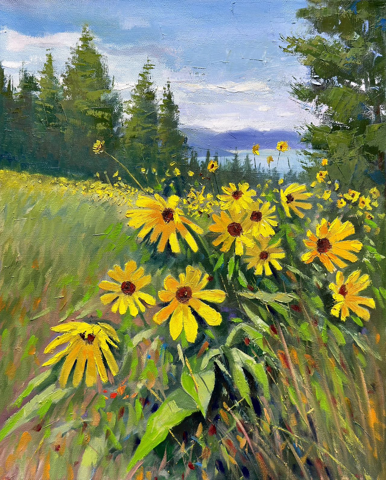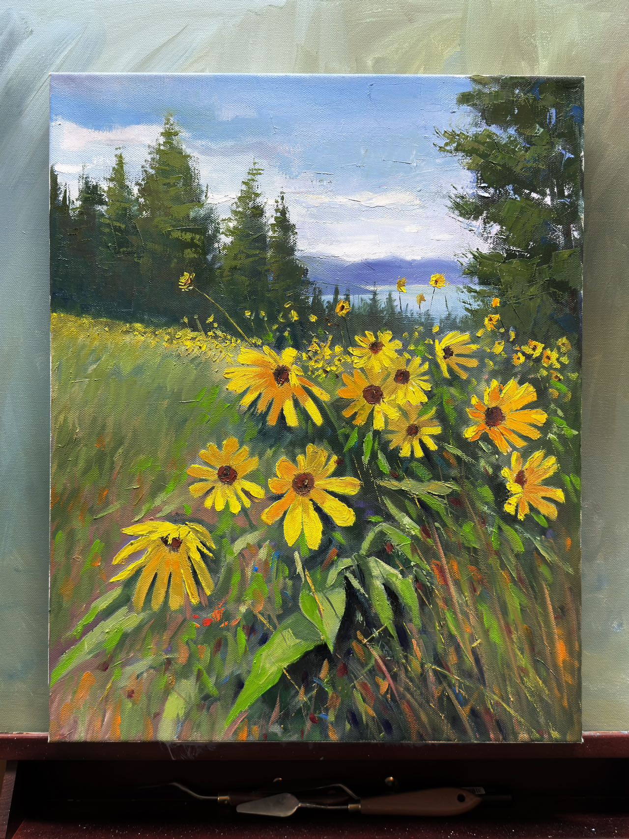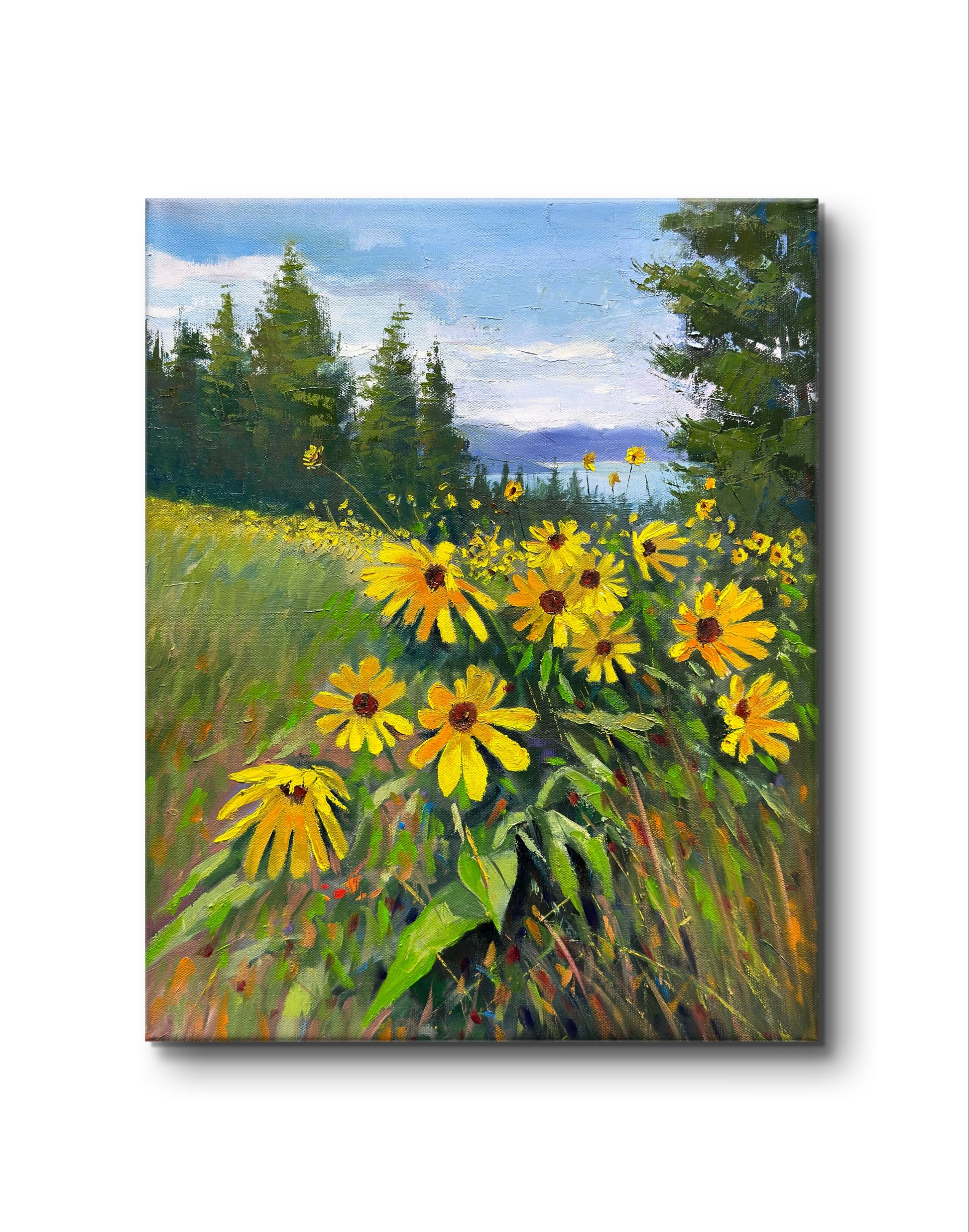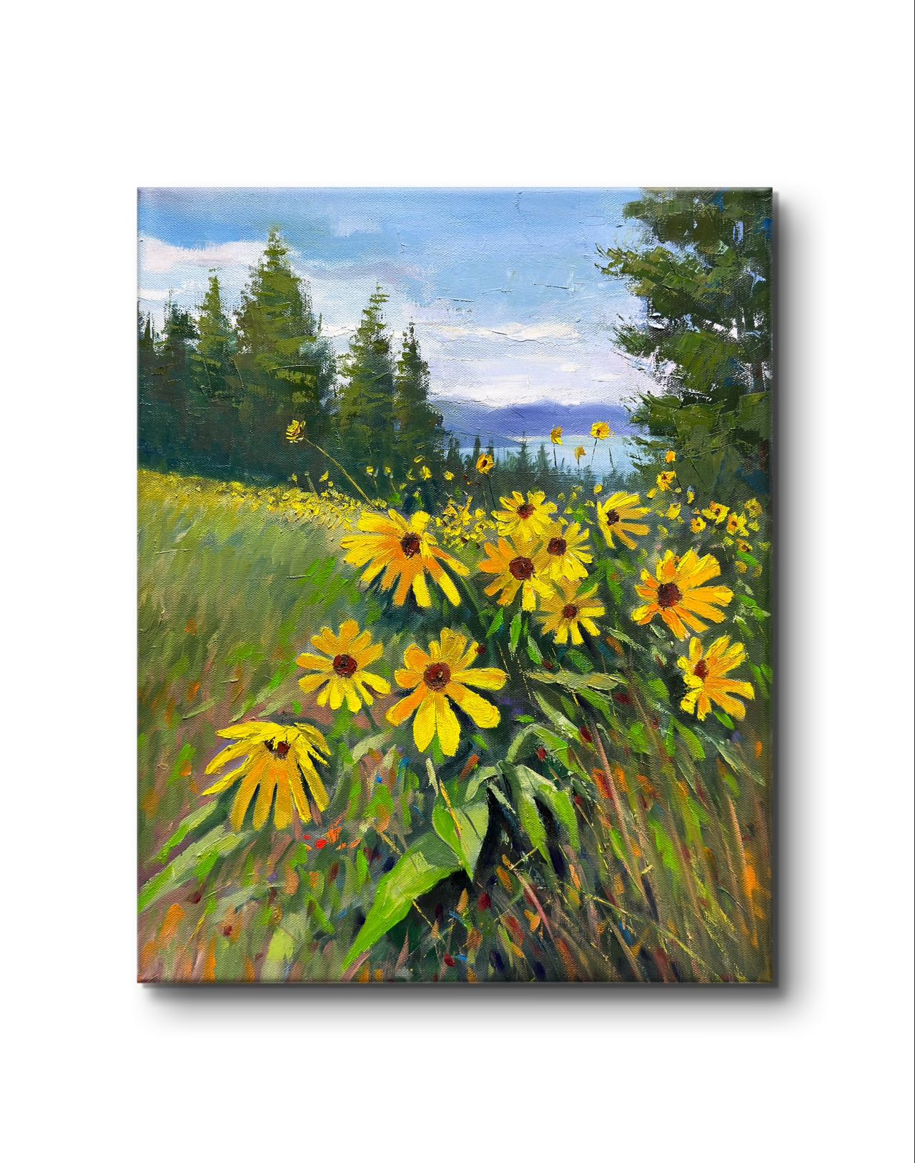 16x20" Arrowleaf Kelowna's official flowers at Knox mountain in Kelowna,BC, Canada, Original landscape oil painting art on Stretched Canvas