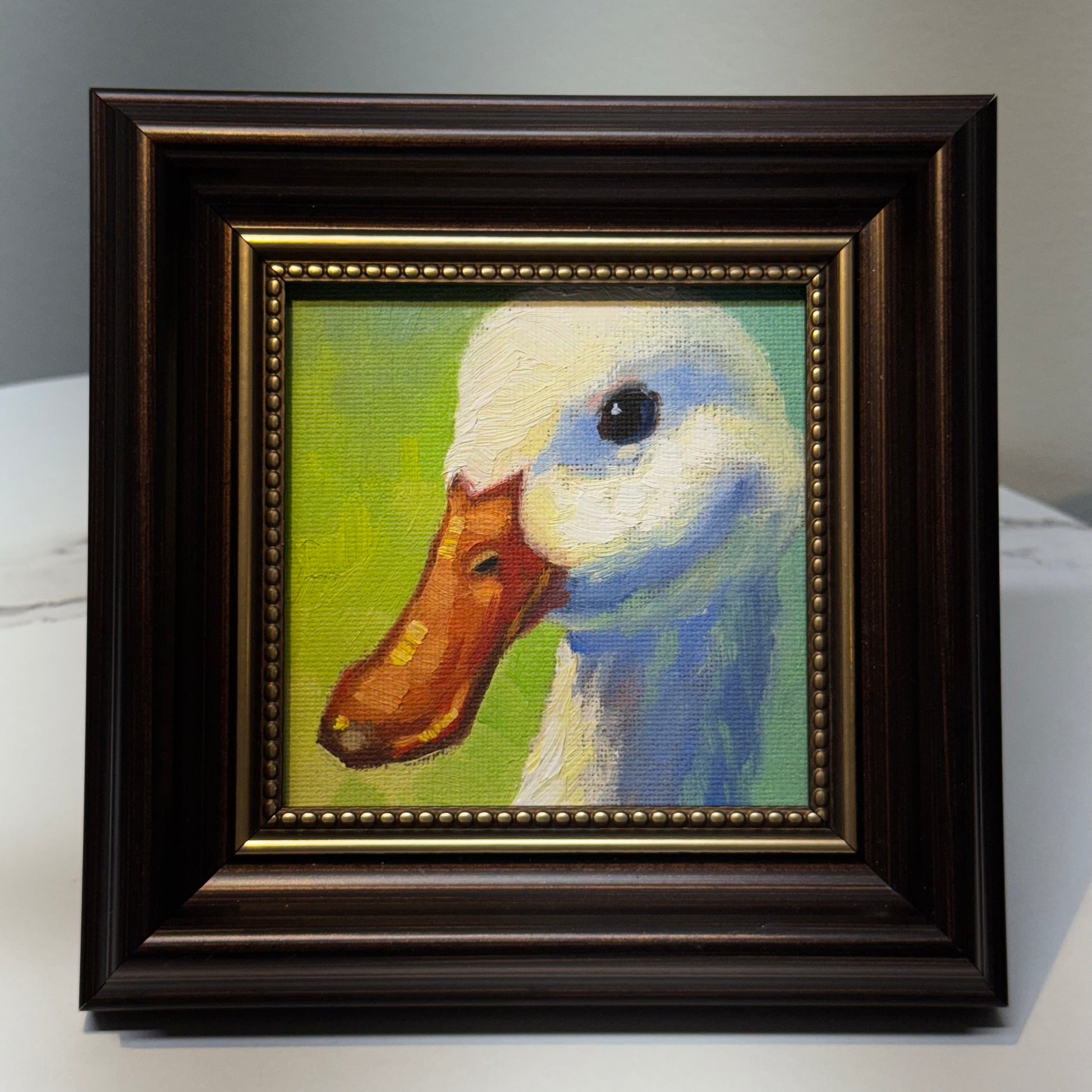 4"x4" Cute Duck Original Small Oil Painting - Framed Canvas Artwork for Home Decor | Charming Bird Art, Unique Gift