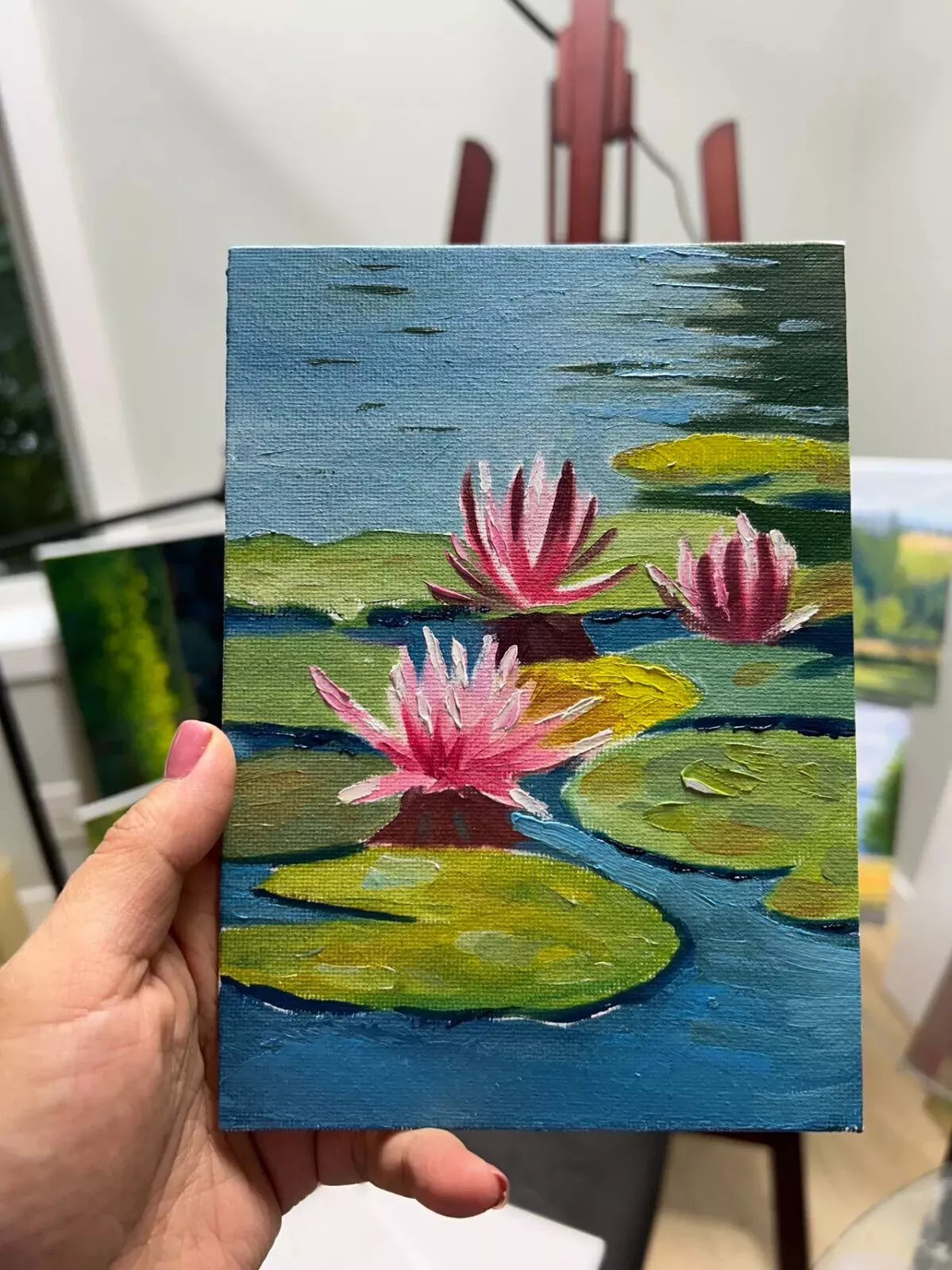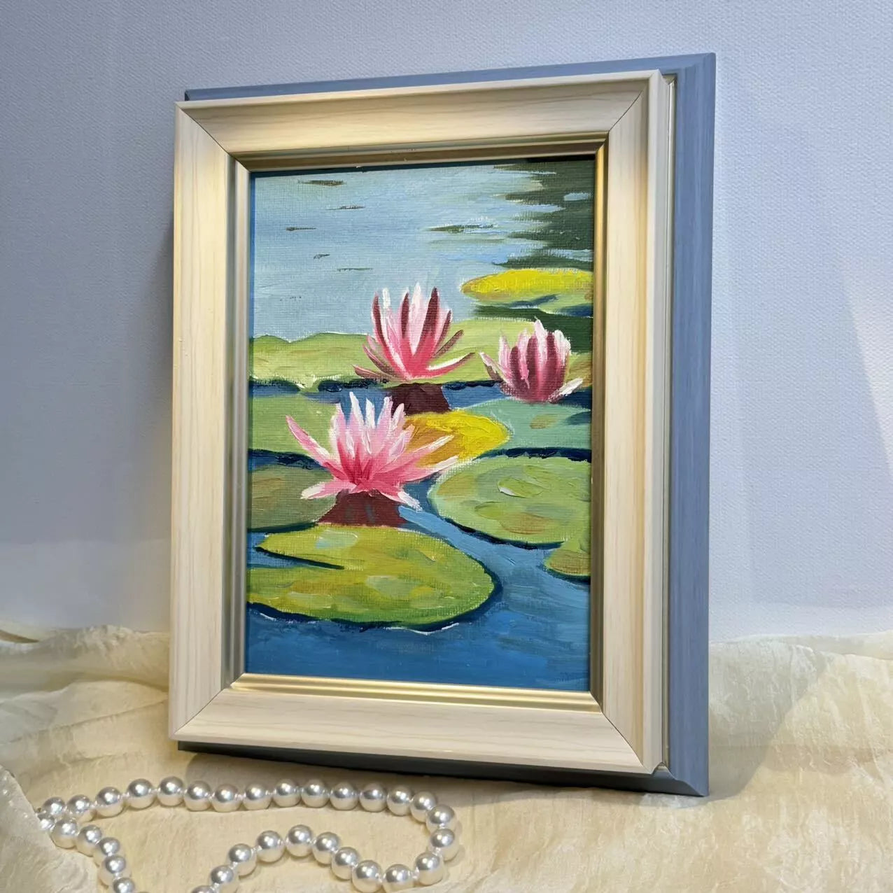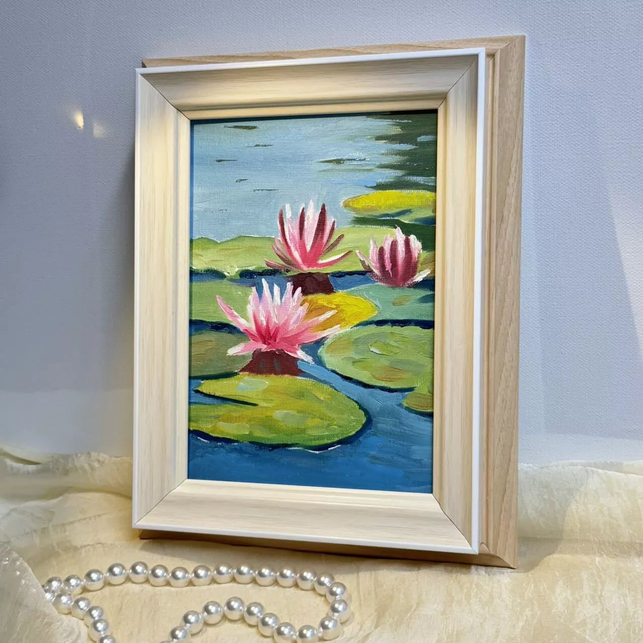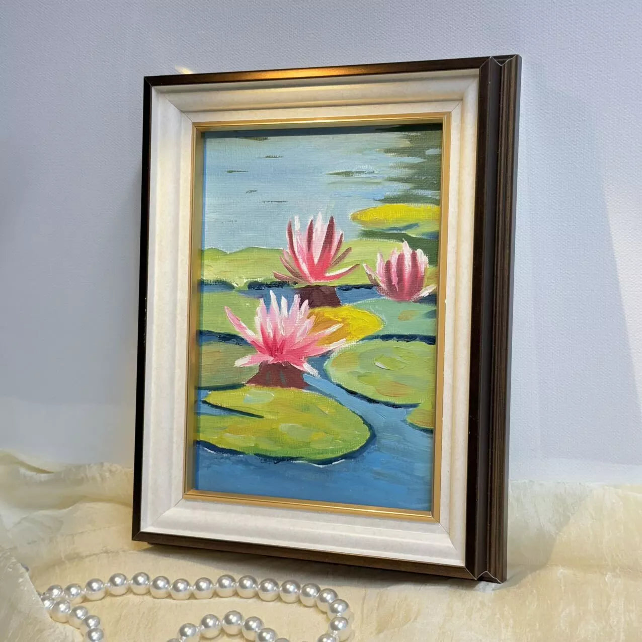 5"x7" Lotus Flowers blossom original 5"x7" oil painting with frame wall art home decor