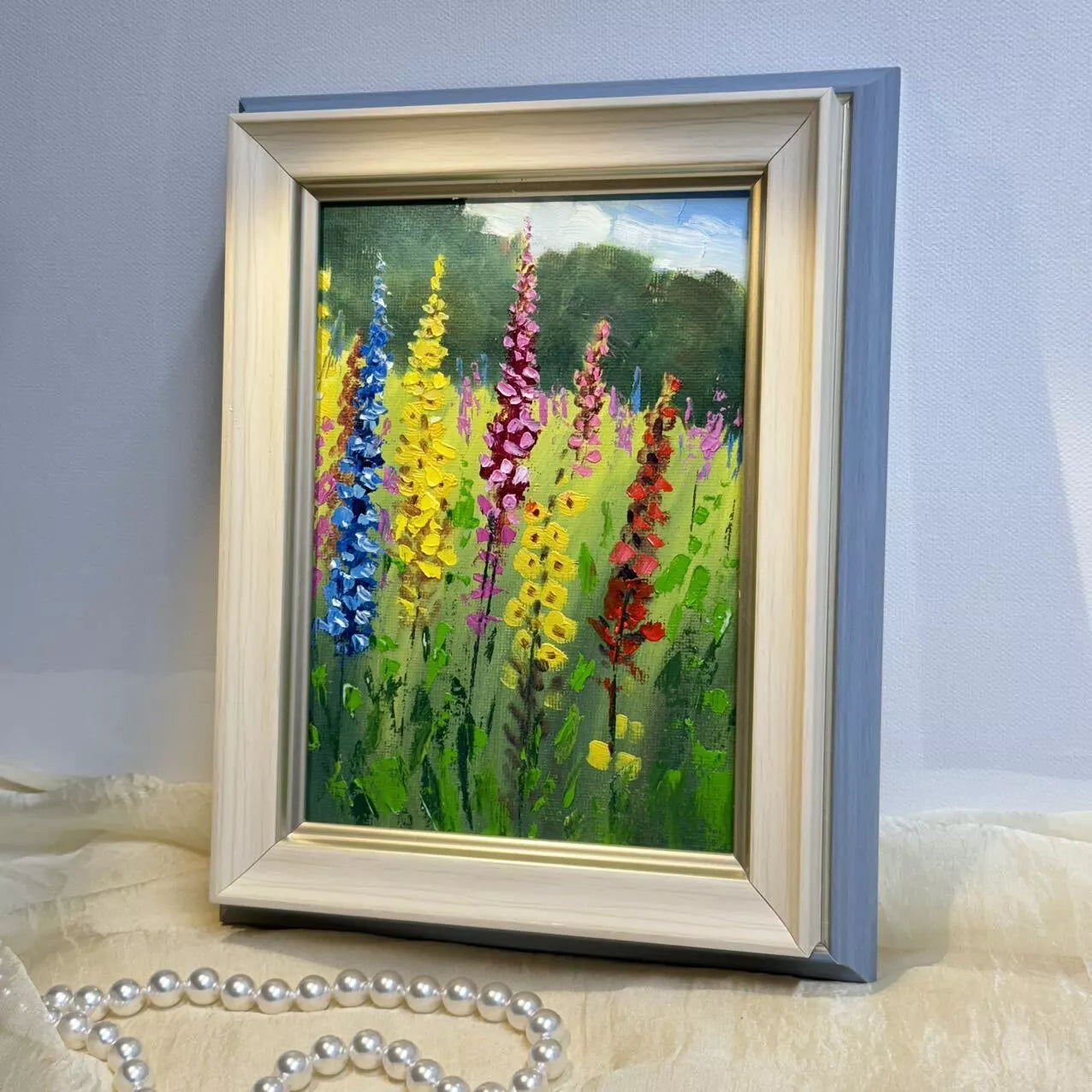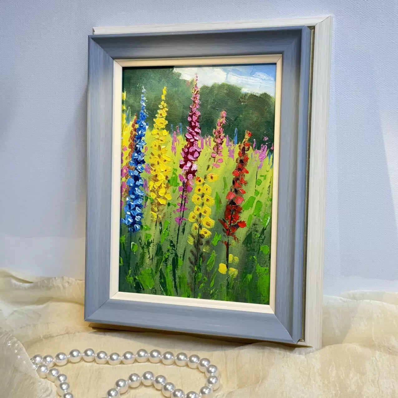 5"x7" Wild Flowers blossom original oil painting with frame wall art home decor