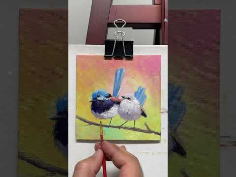6"x6" Cute Fairywrens, Love birds Oil Painting on Canvas