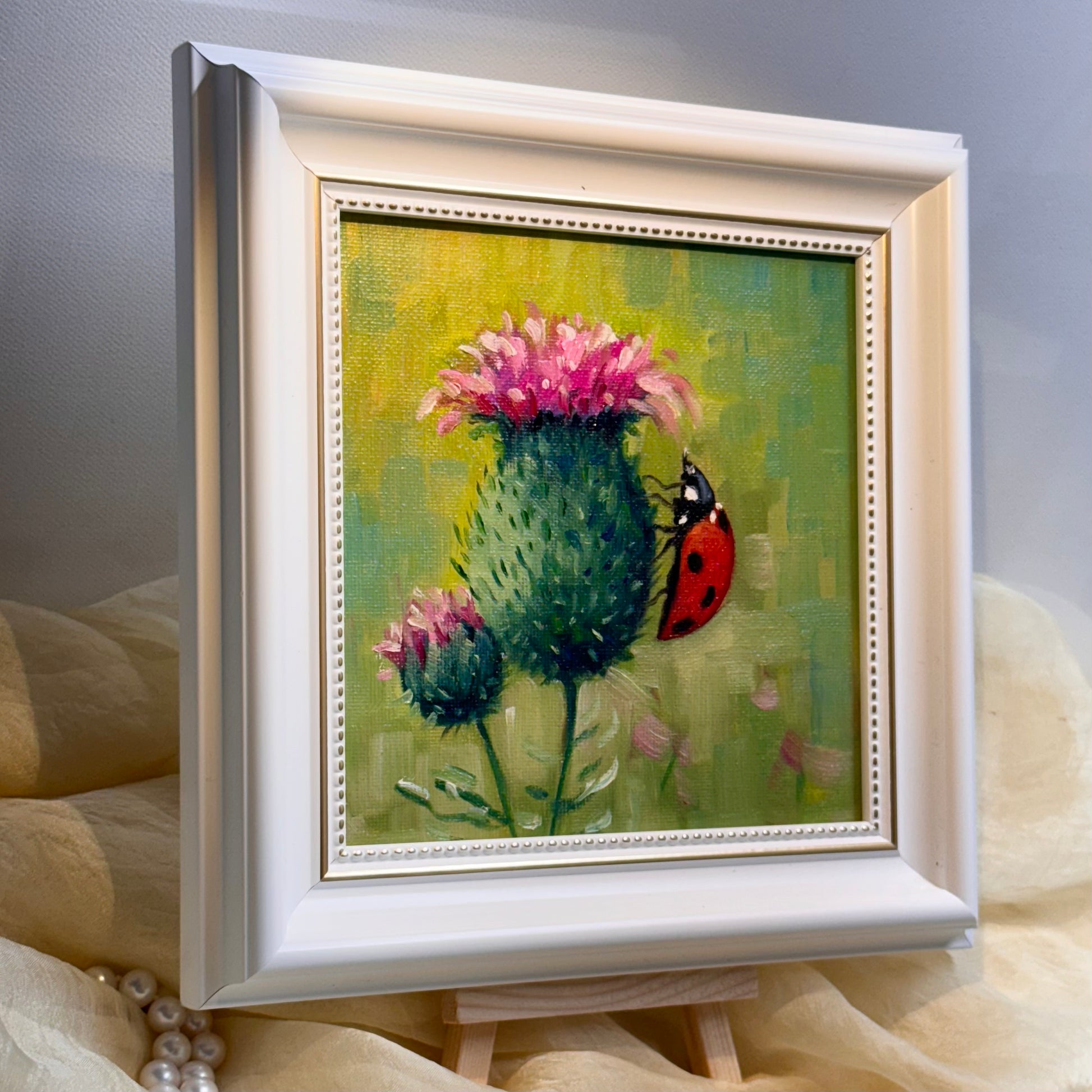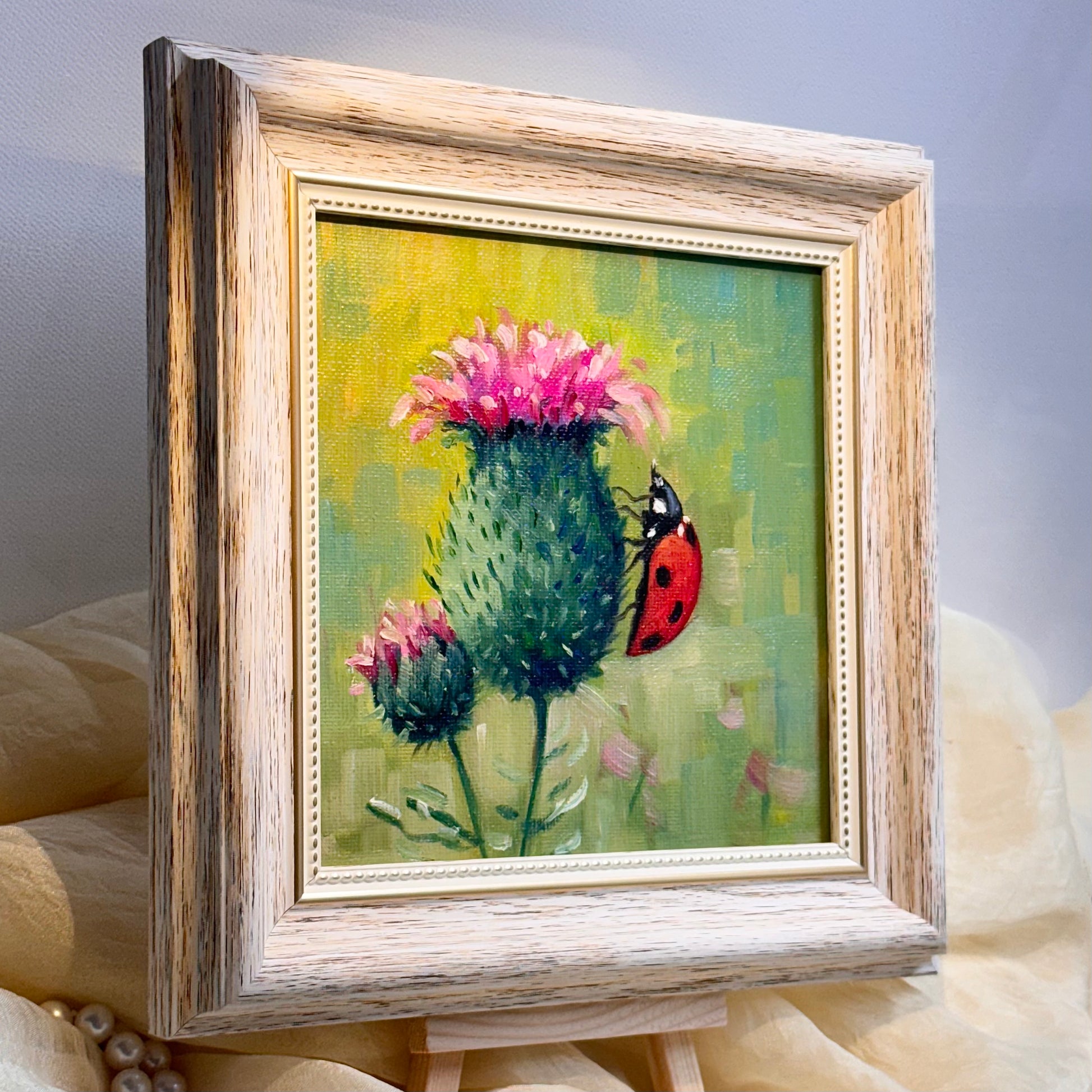 Celebrate the beauty of nature with this exquisite handmade oil painting featuring the striking milk thistle flower. Known for its vibrant colors and unique shape, this artwork captures the essence of the flower in stunning detail, bringing a touch of the wild into your home.
