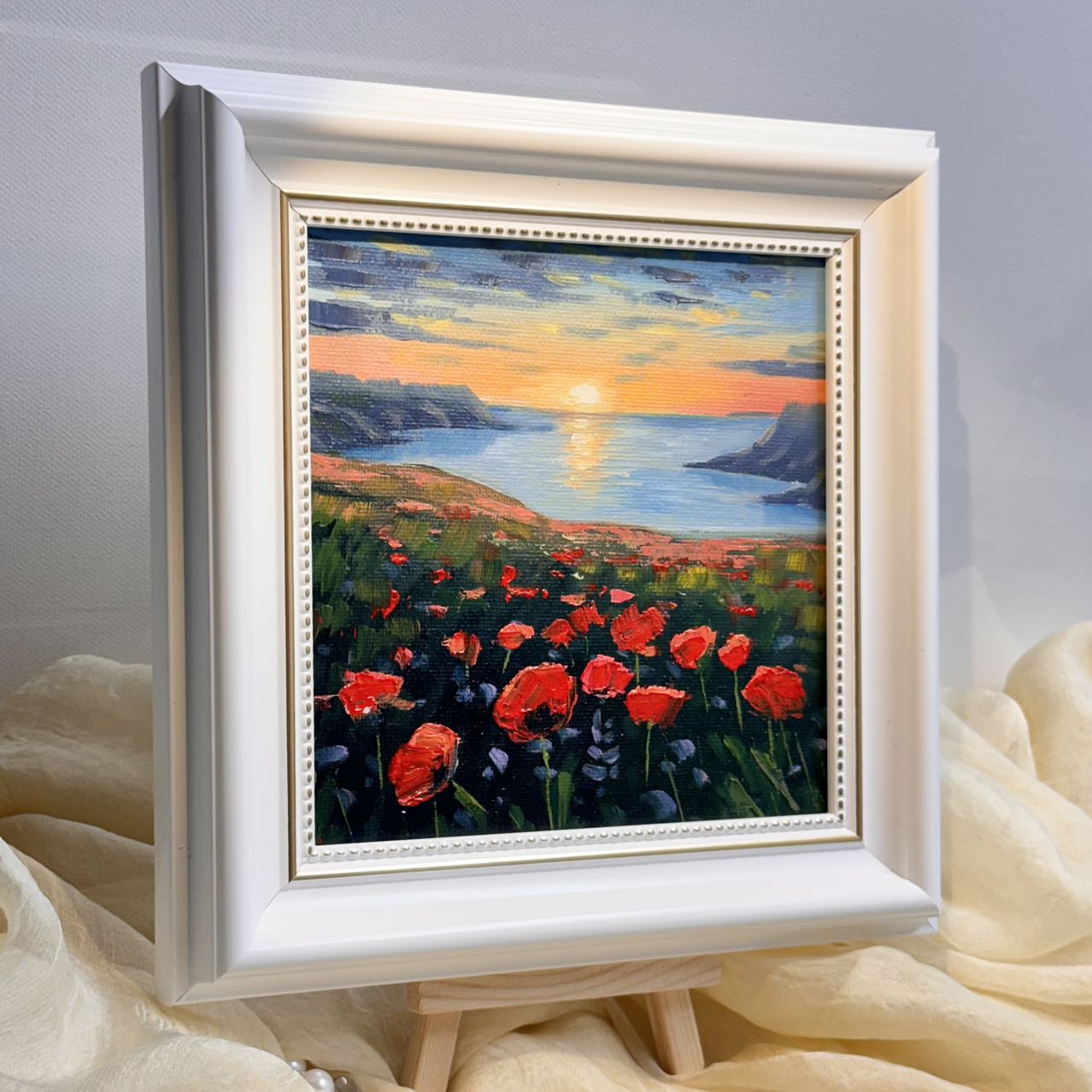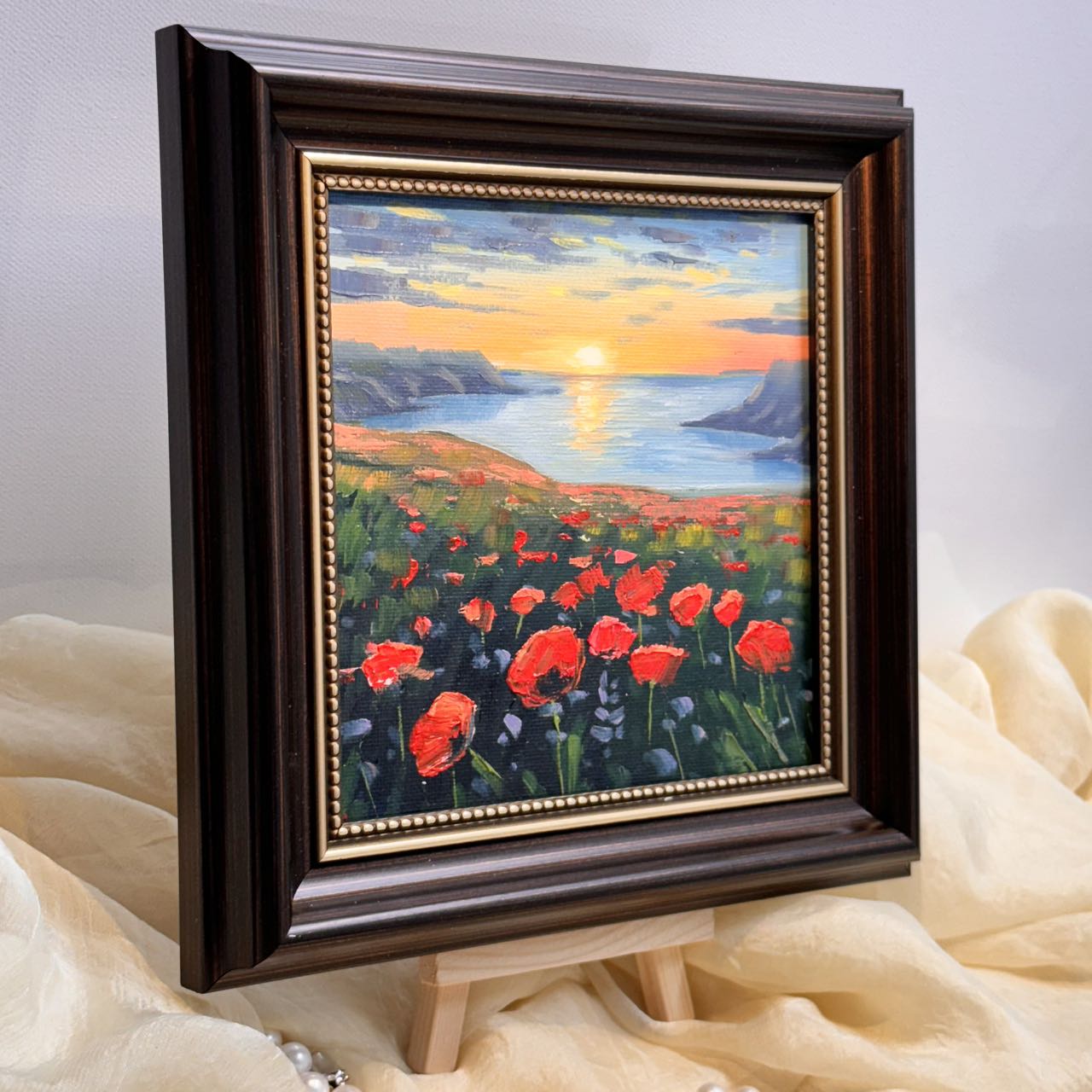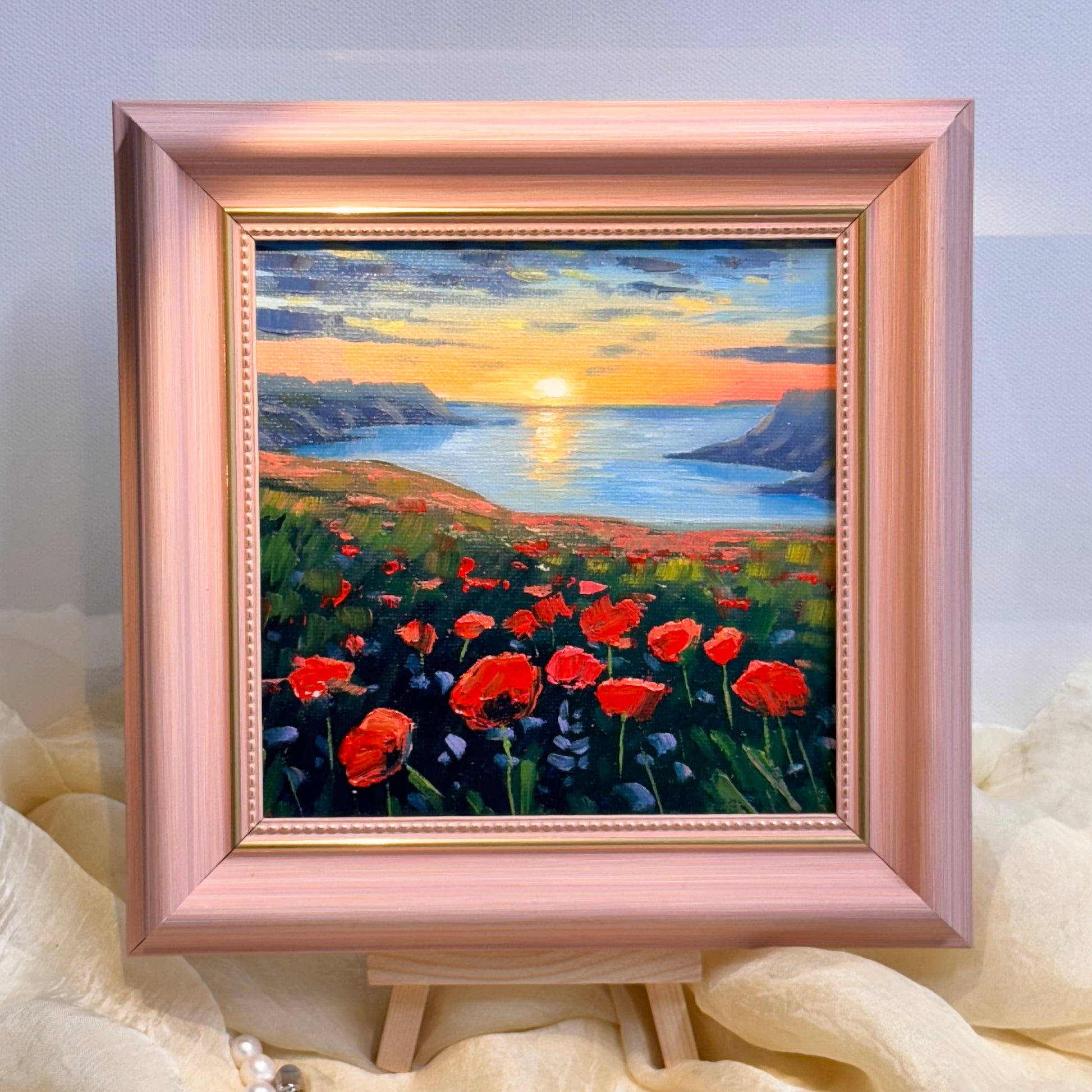 - Style: A beautiful blend of nature’s colors, capturing the peaceful and joyful essence of a sunset in a poppy field.