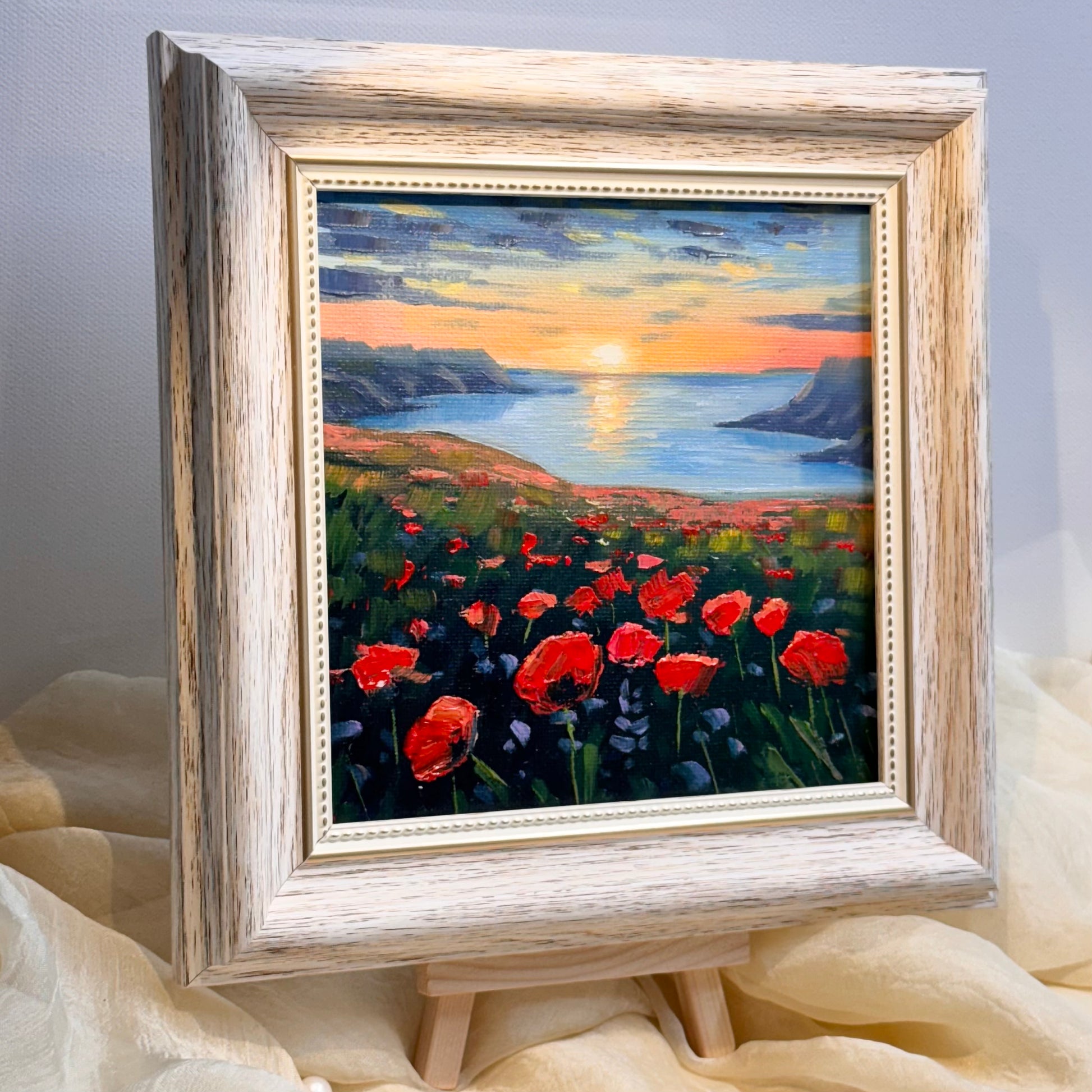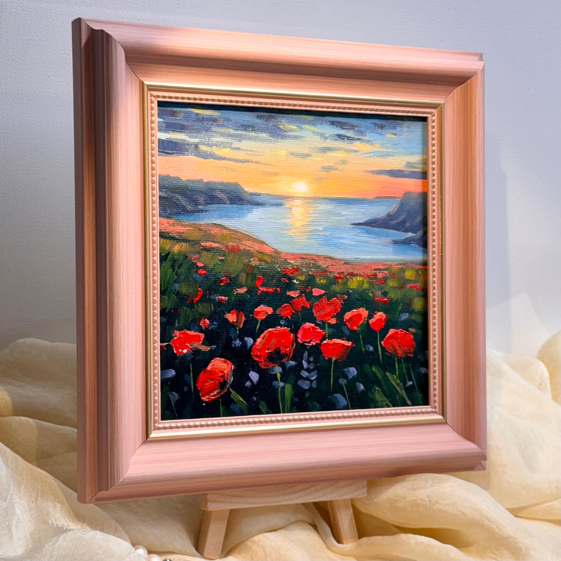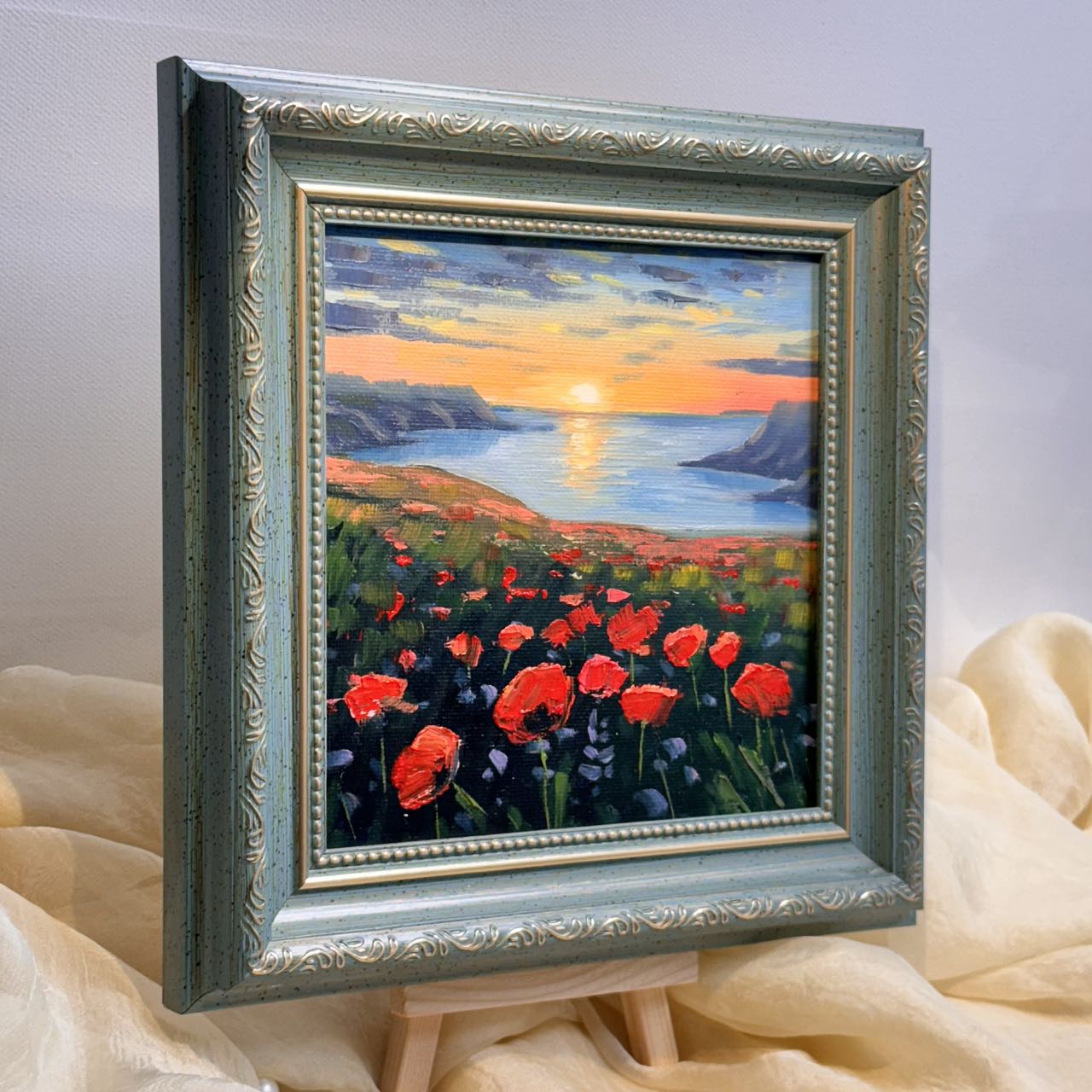 - Style: A beautiful blend of nature’s colors, capturing the peaceful and joyful essence of a sunset in a poppy field.