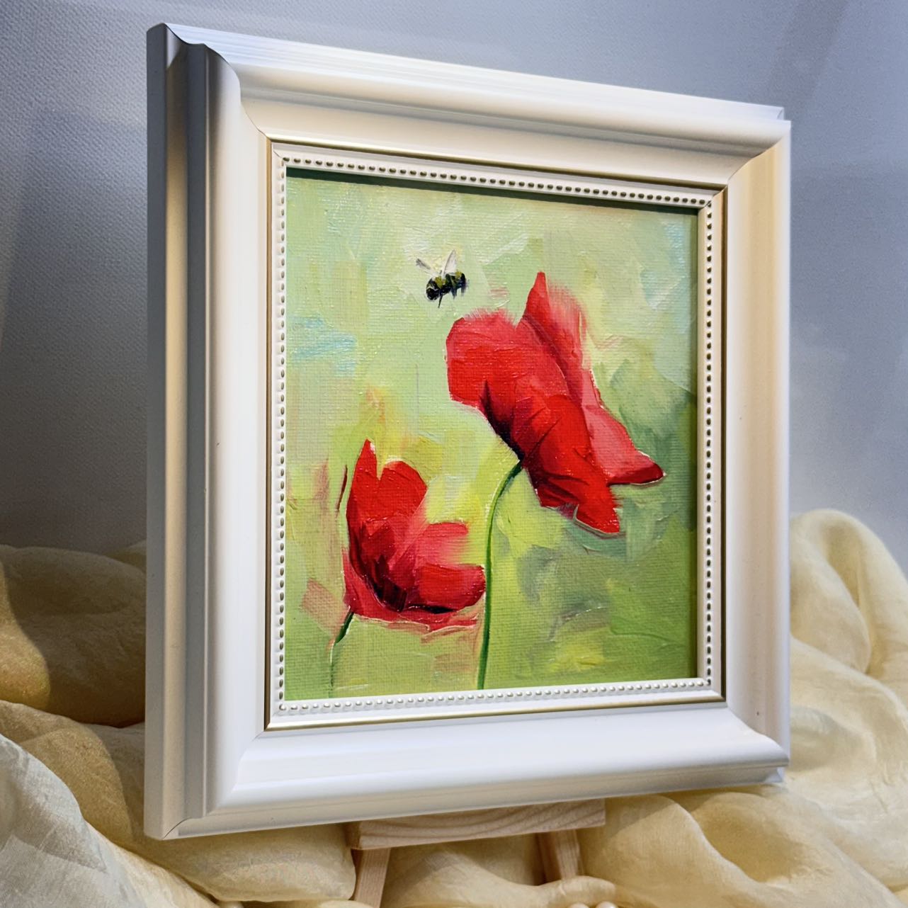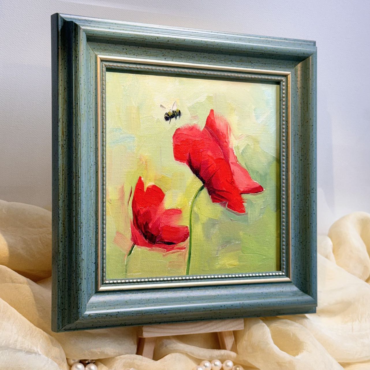 Bring the bold beauty of nature into your home with "Red Poppy Flower," an original hand-painted oil painting. This piece features a stunning, single red poppy in full bloom, set against a soft, blurred background that allows the flower to truly shine. The vibrant red petals, paired with subtle touches of green and gold, evoke feelings of elegance, vitality, and grace. The delicate brushstrokes and rich, layered textures give this painting depth and movement, making it a perfect statement piece for any room.