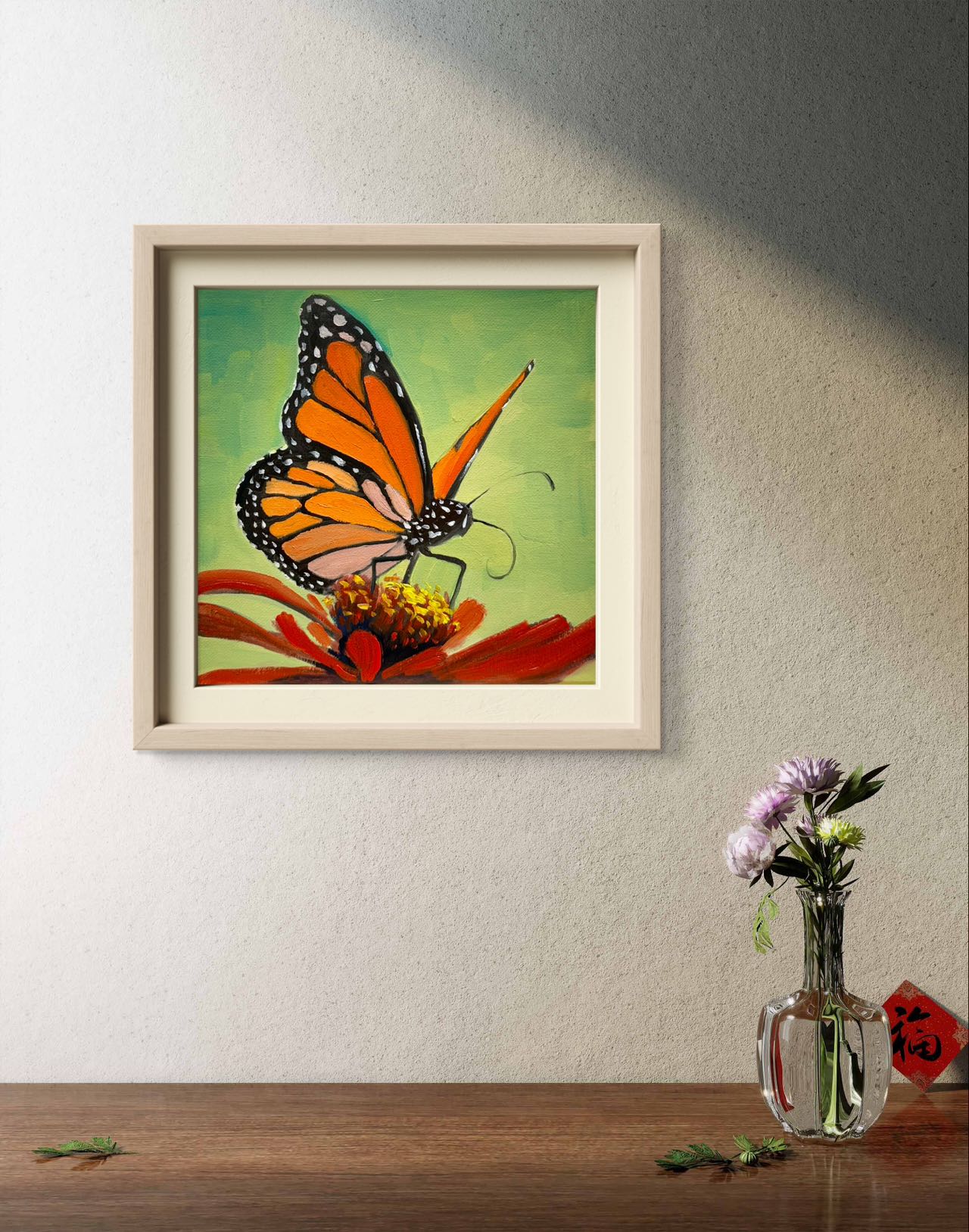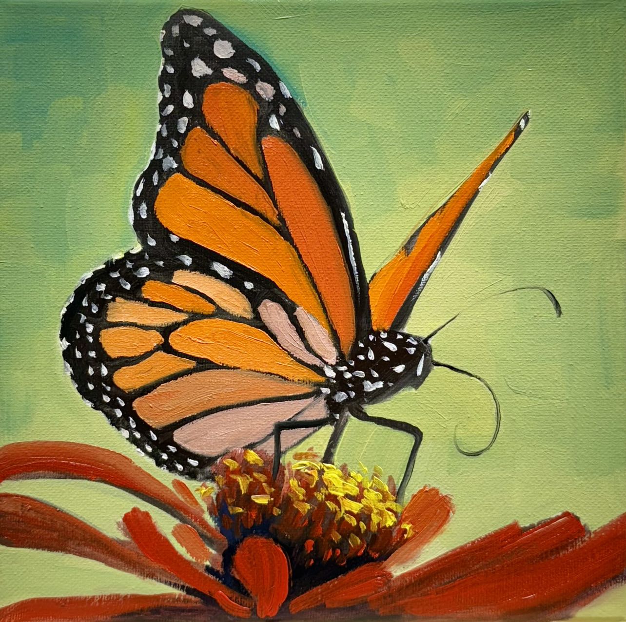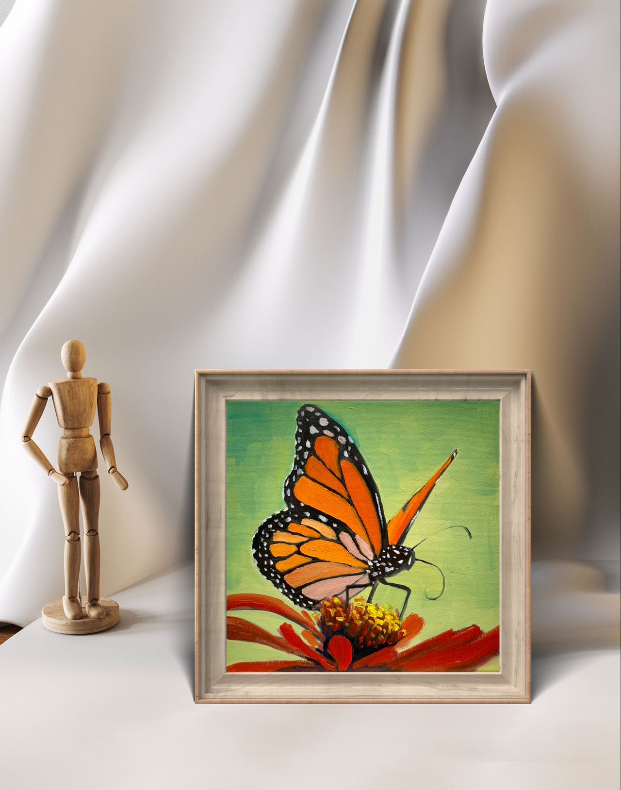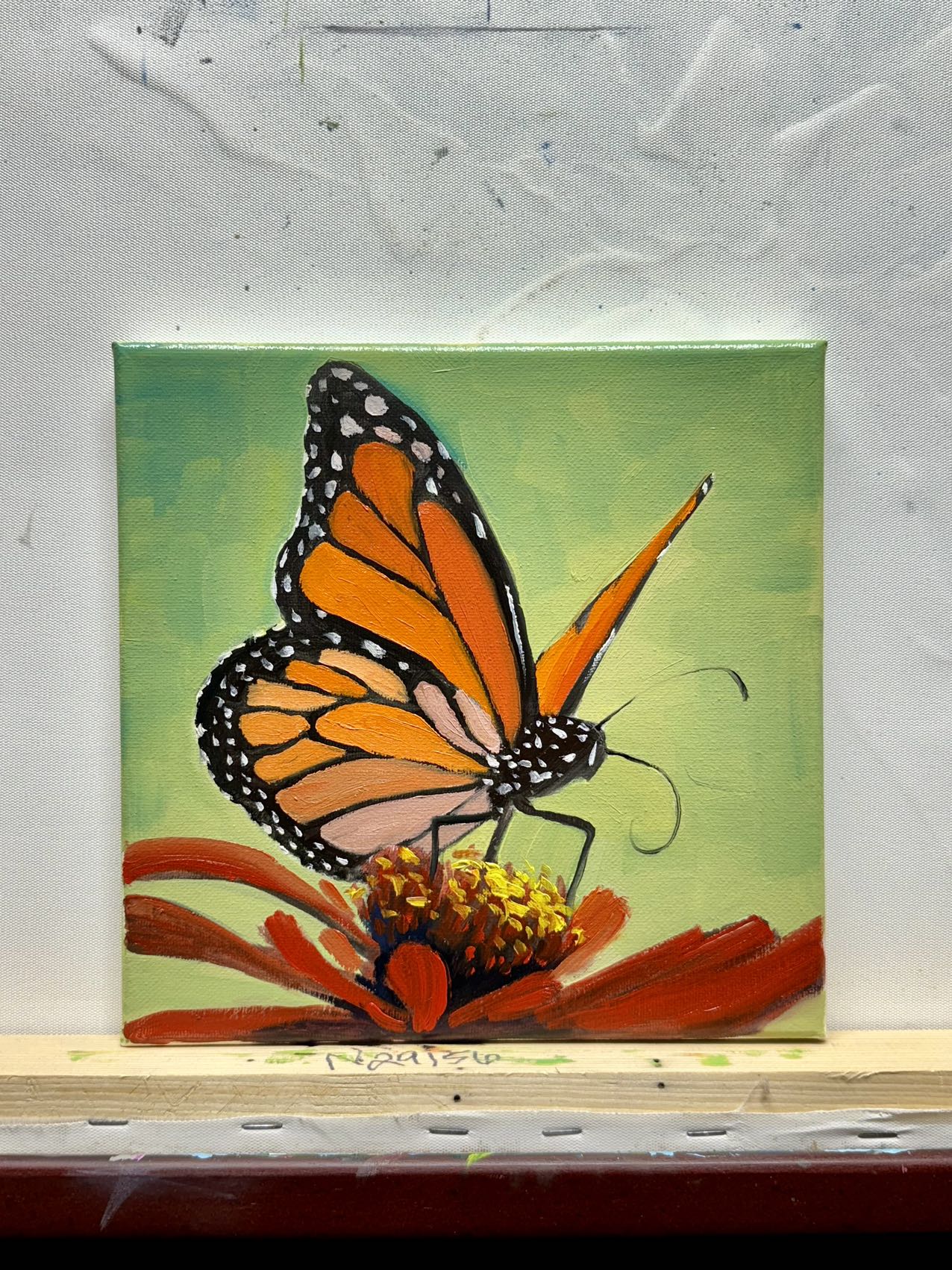 8"x8" Butterfly art Original handmade oil painting art on Stretched Canvas wall art