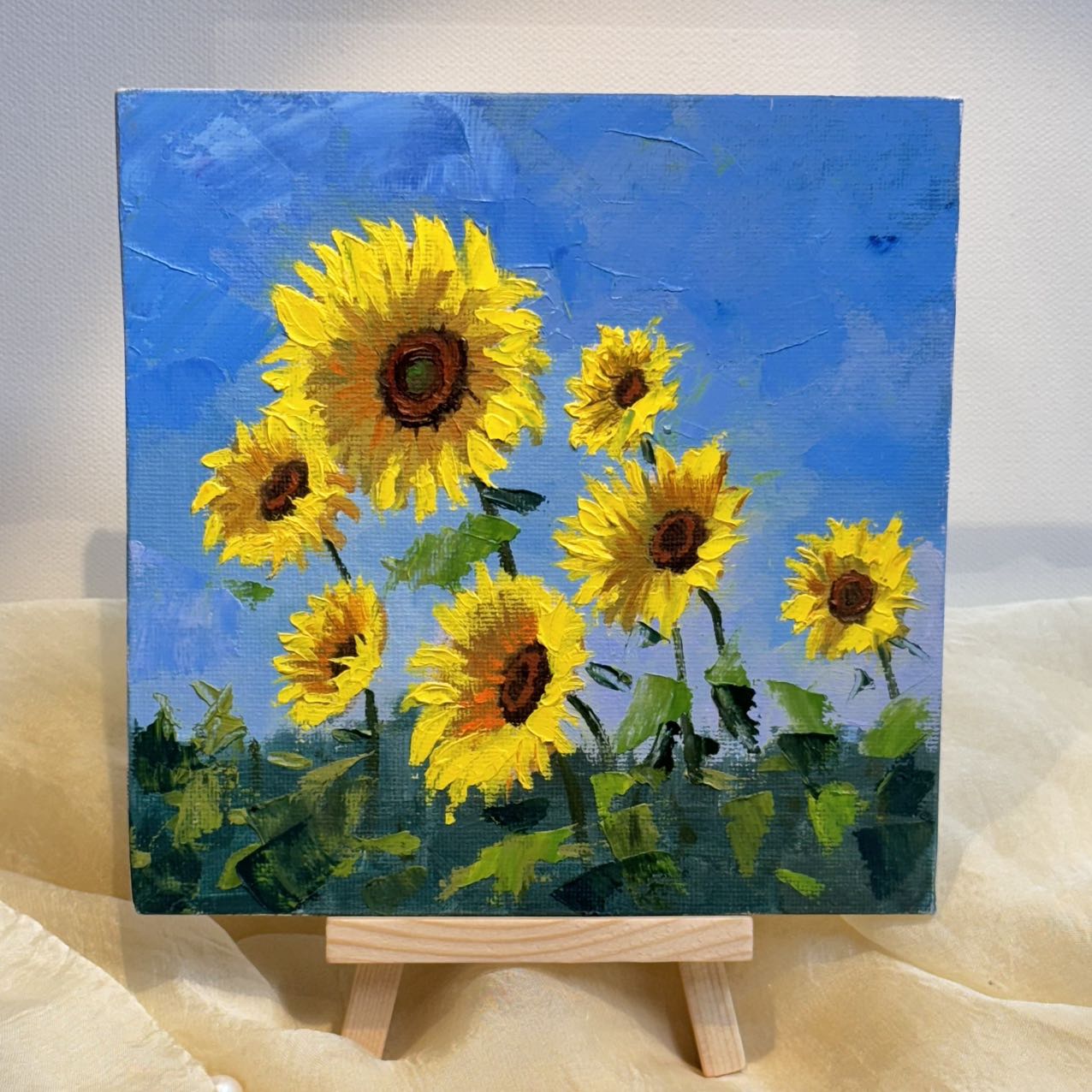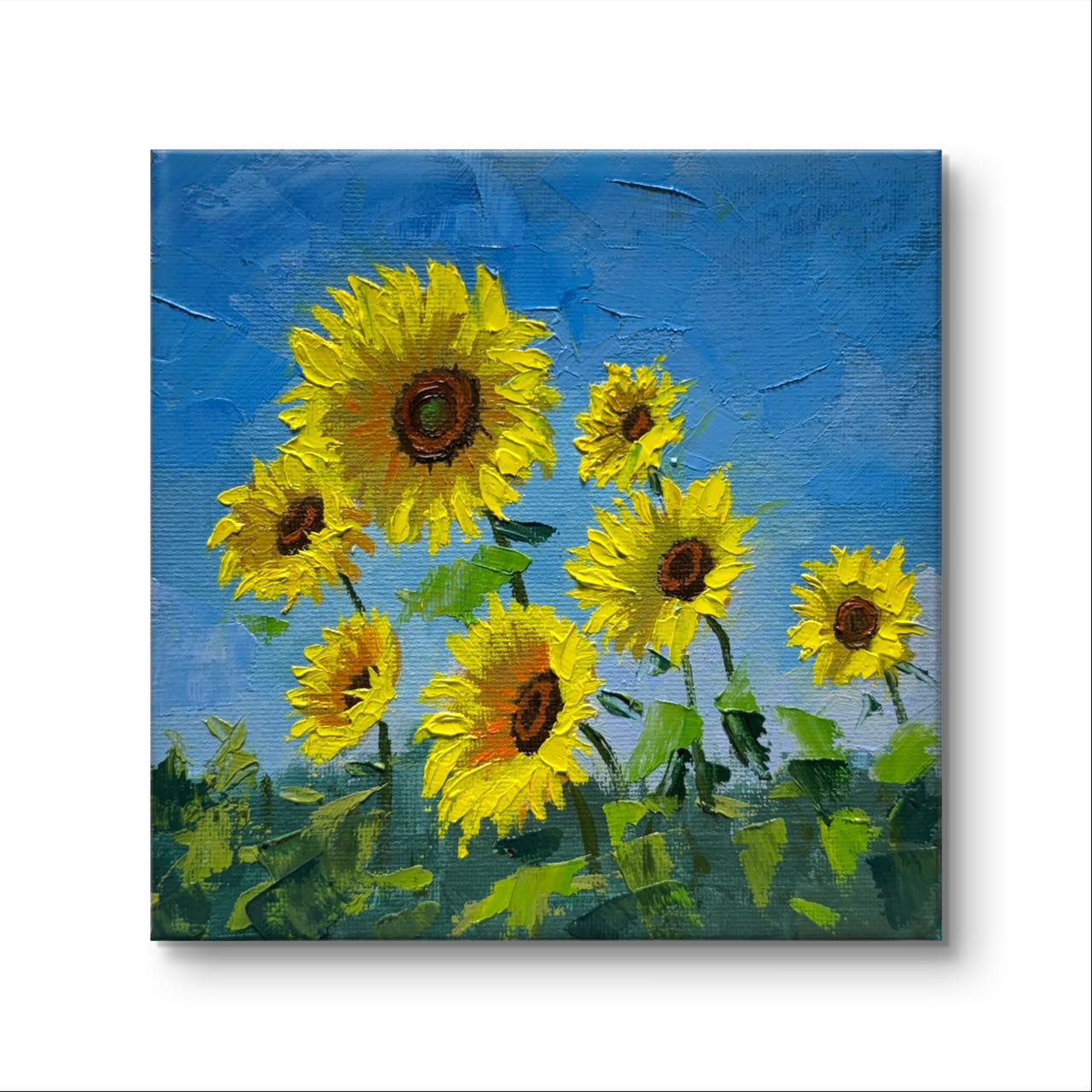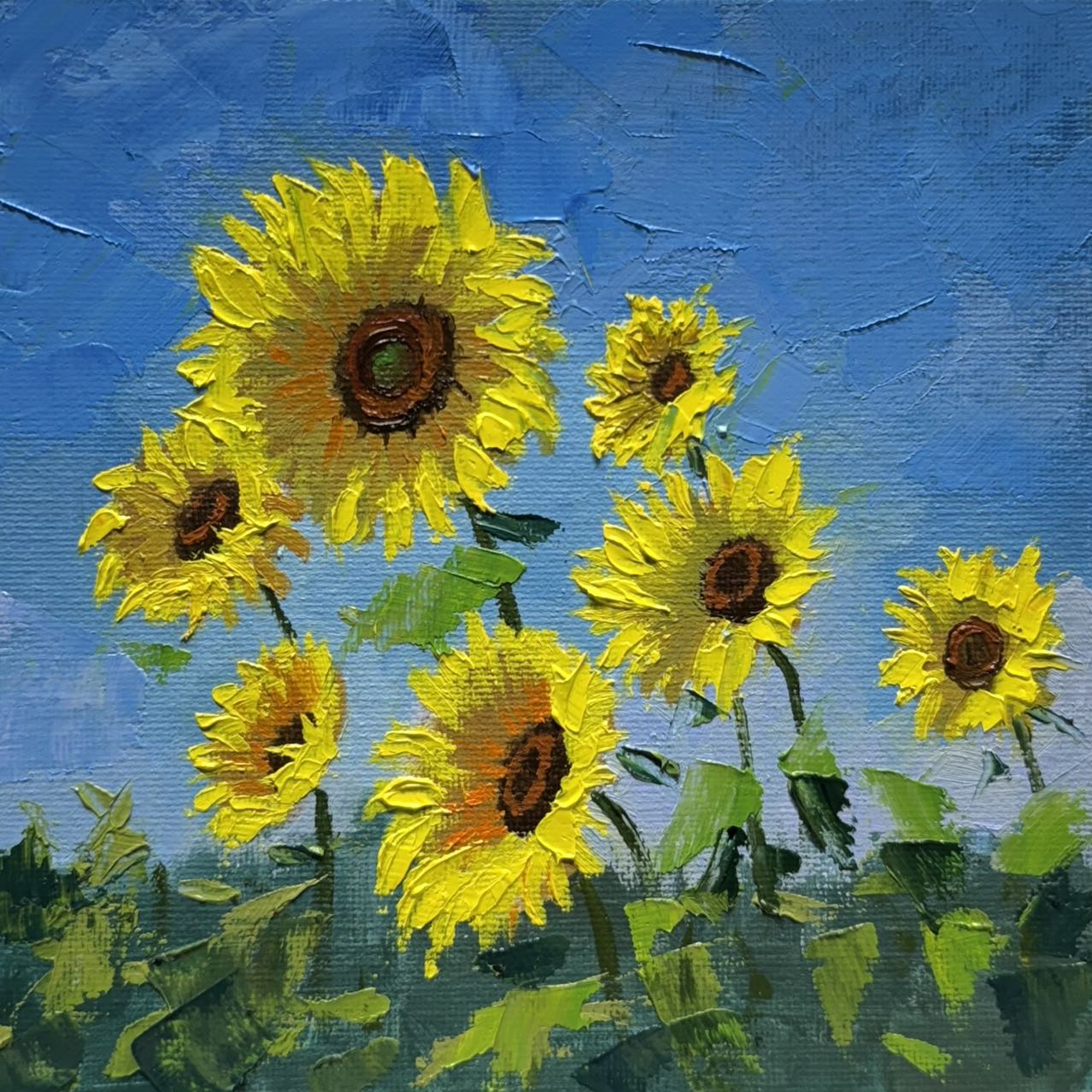 6"x6" Sunflower original oil painting on stretched Canvas/wall art decor /Perfect gift for girl friend