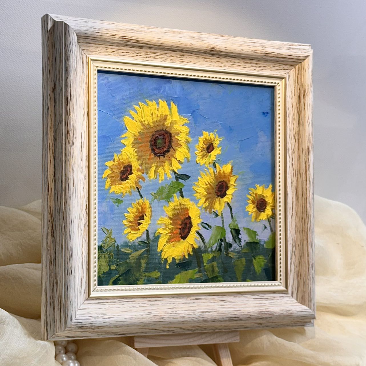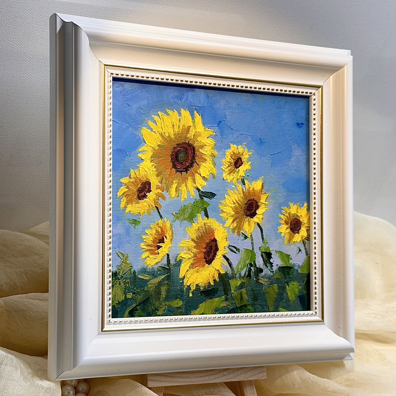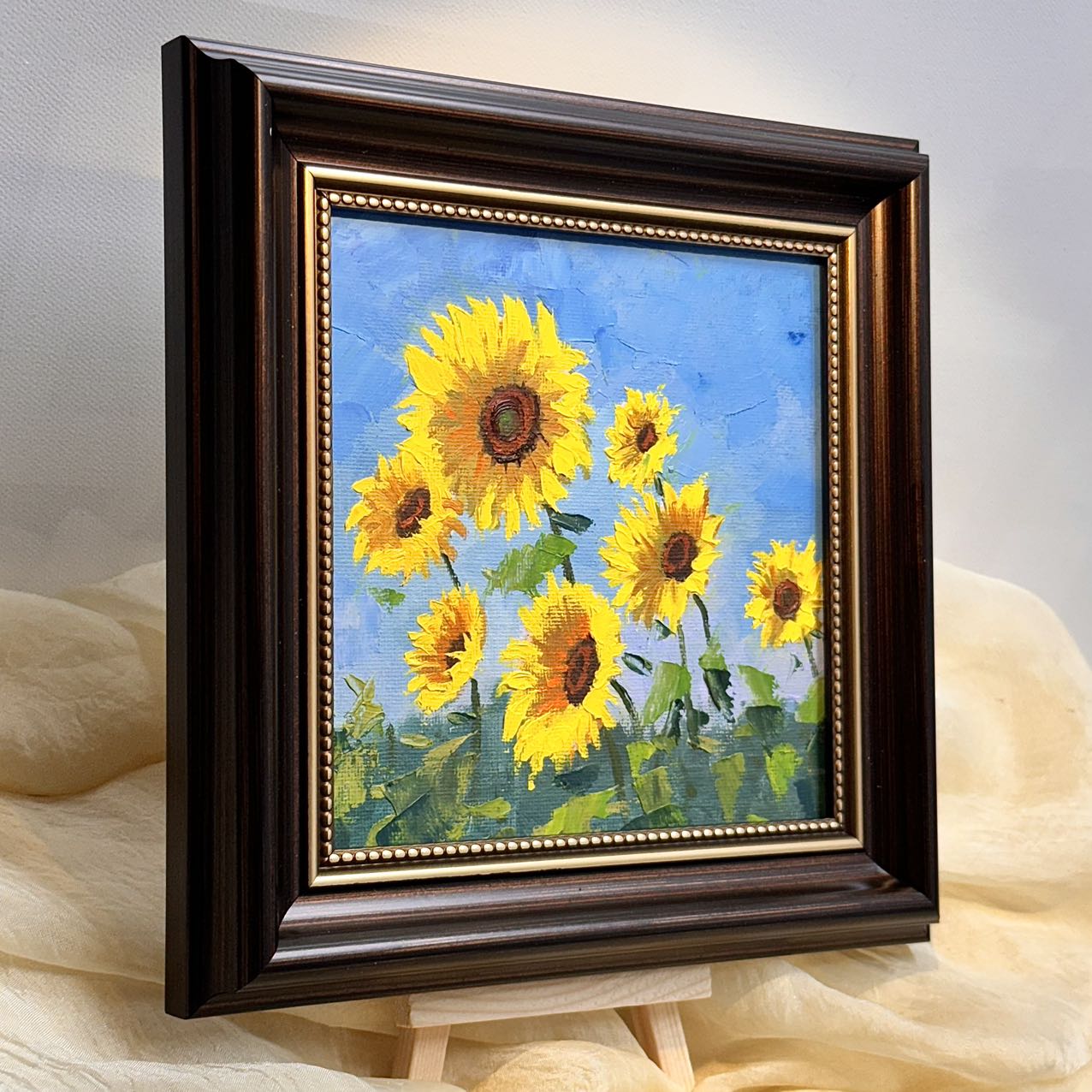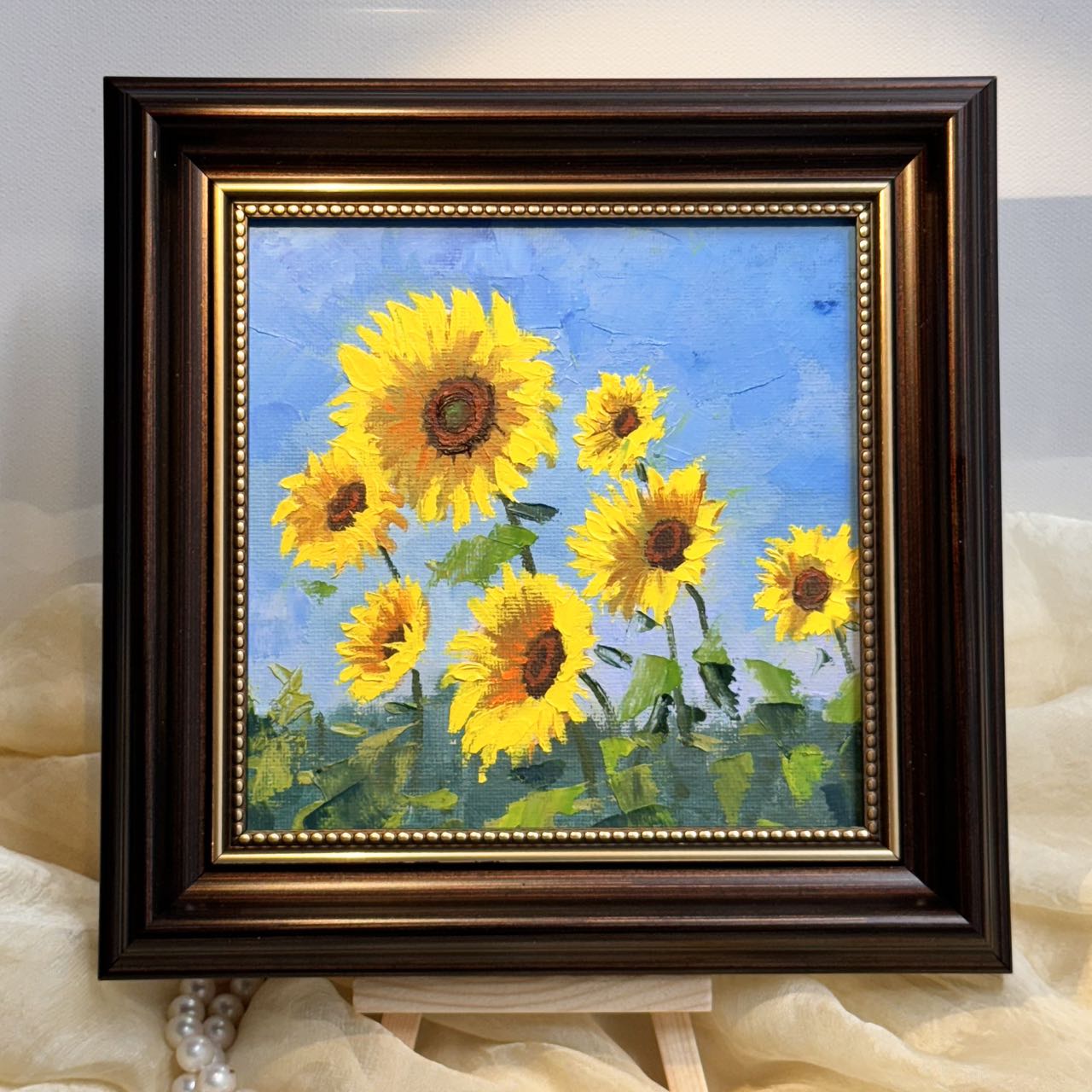 6"x6" Sunflower original oil painting on stretched Canvas/wall art decor /Perfect gift for girl friend