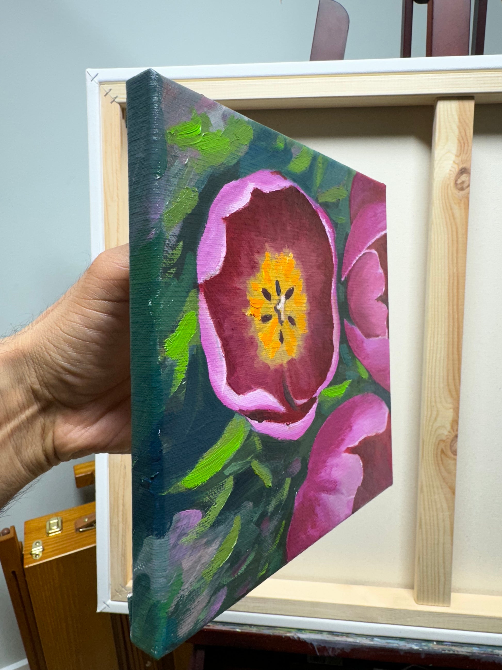 8"x8" blossom flower original oil painting on stretched Canvas/wall art decor