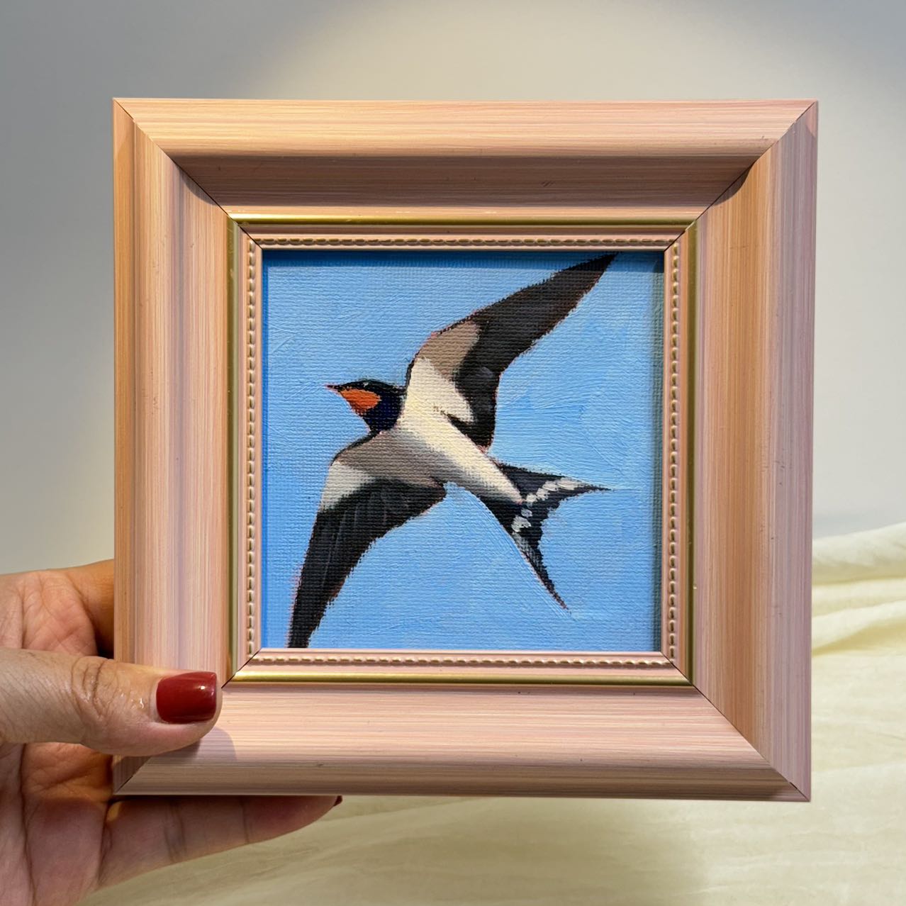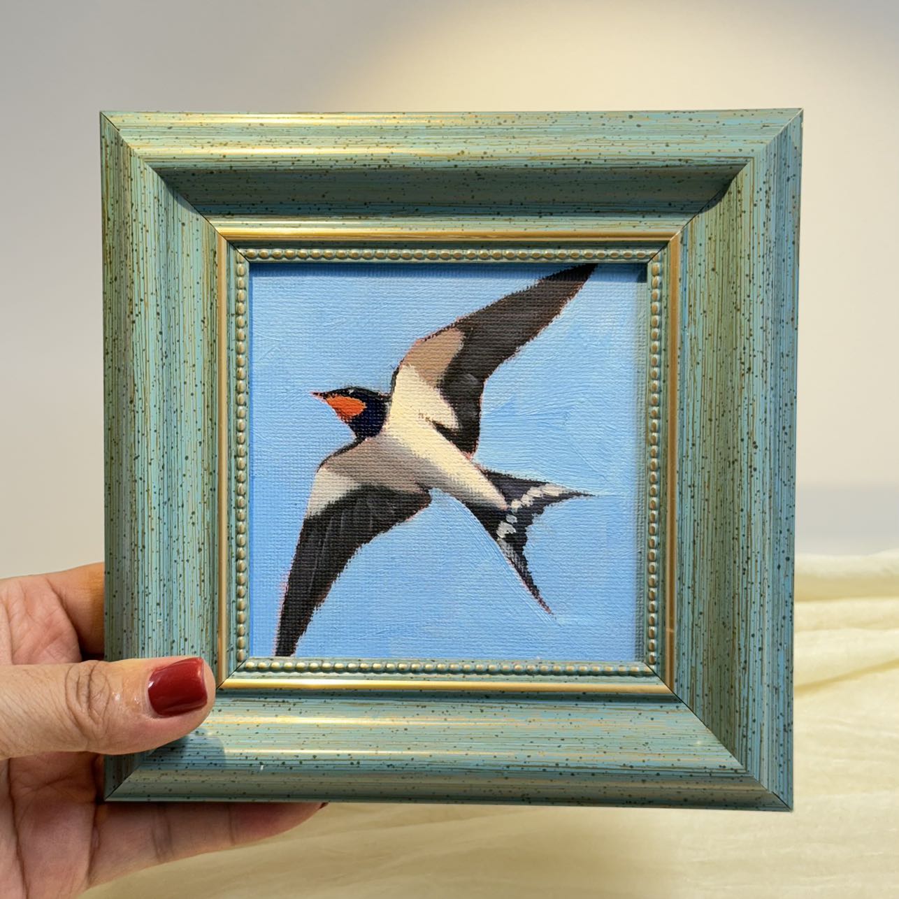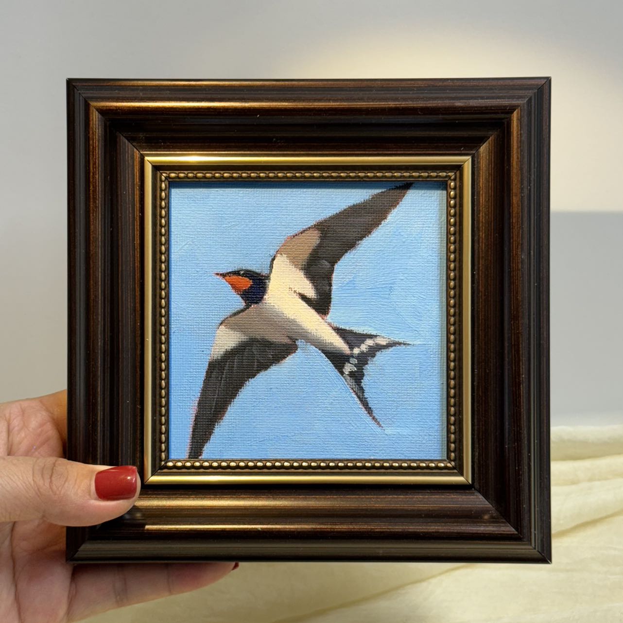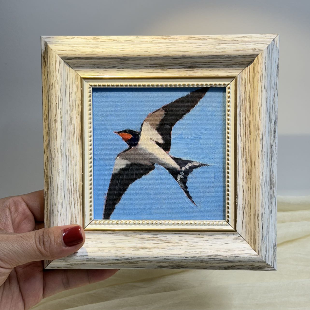 4"x4" Barn Swallow: Original Small Oil Painting - Framed Canvas Artwork for Home Decor | Charming Bird Art, Unique Gift