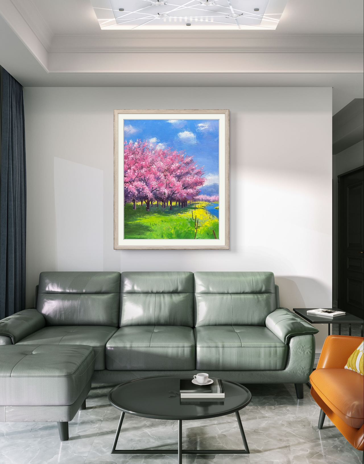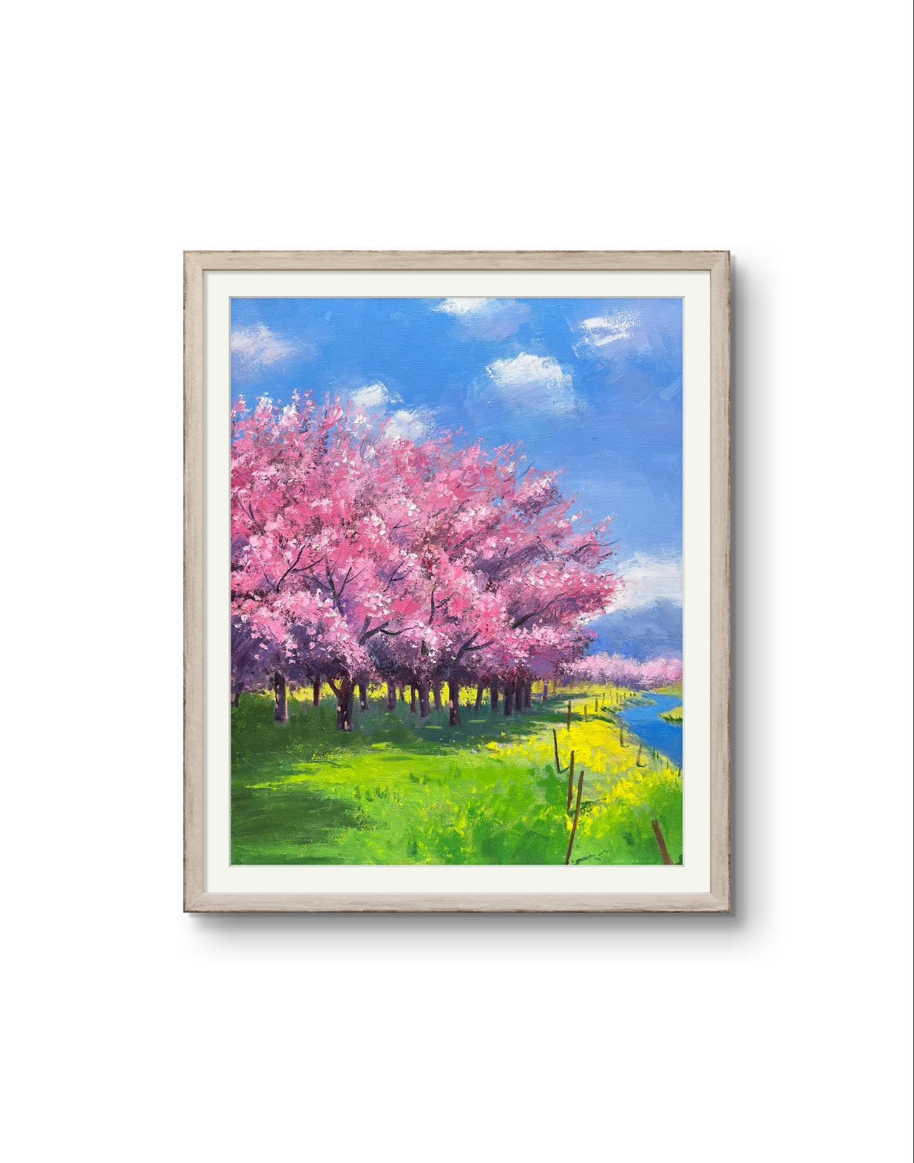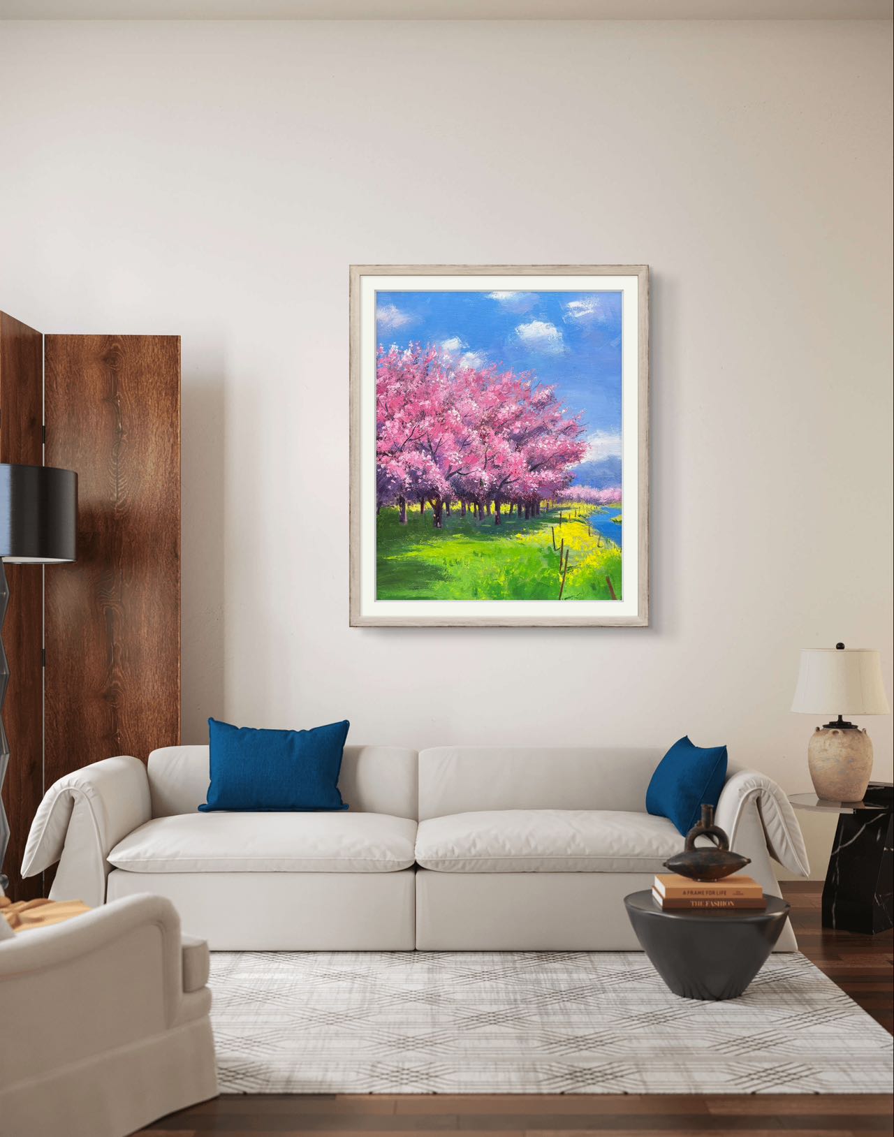 This stunning 16"x20" oil painting on stretched canvas depicts a beautiful cherry blossom tree in full bloom. Created by artist Shehzad Kausar in 2024, this original piece is signed by the artist and is a true work of art. Handmade in British Columbia, Canada, this floral painting is the perfect addition to any art collection or home decor. The canvas is unframed, allowing for customization to suit your personal style. Don't miss out on the opportunity to own a piece of original art from one of Canada's talented artists.