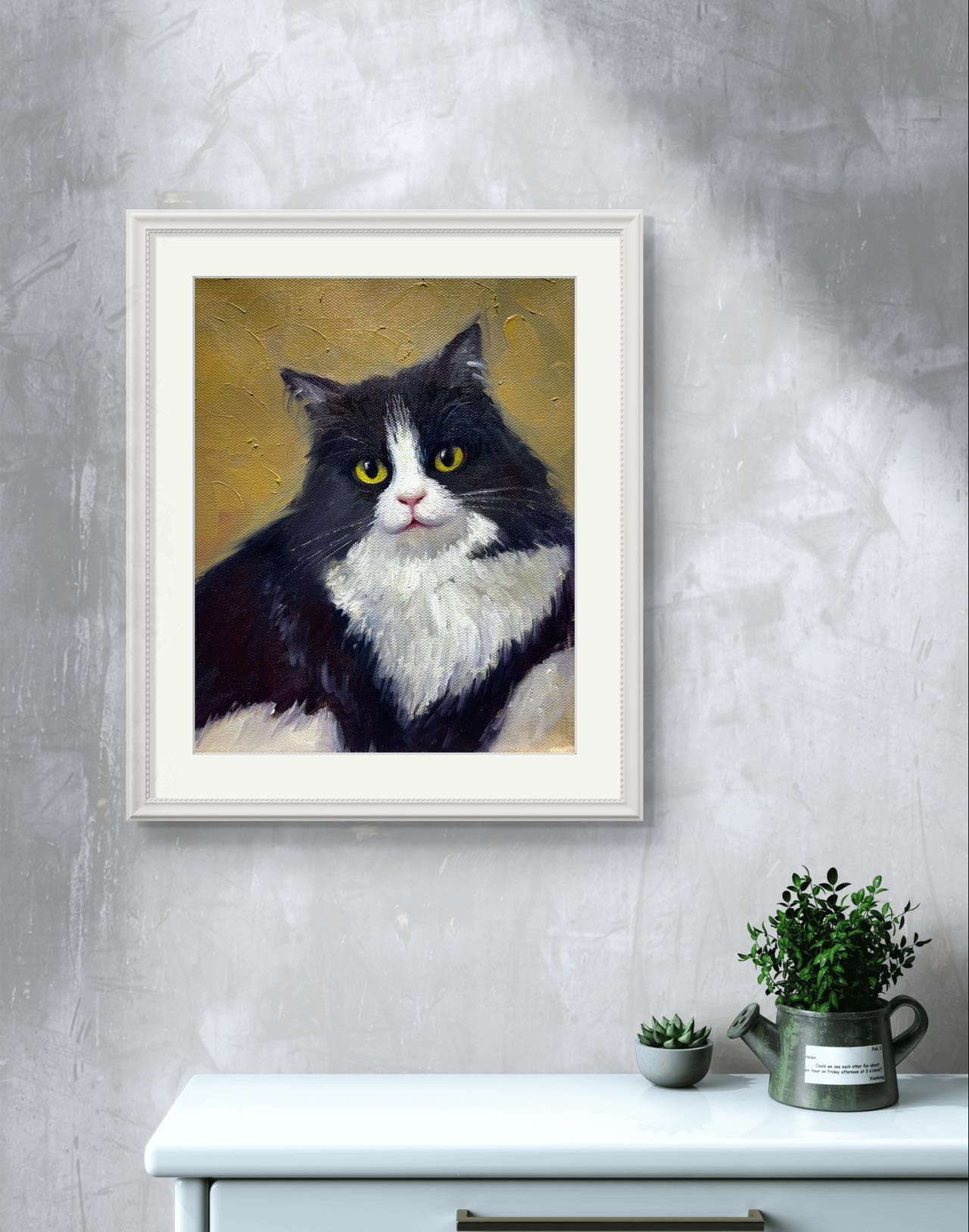 To begin creating your personalized cat portrait in oil, kindly send me a photo of your kitty, and we'll collaborate on the composition. You can click "chat" or email me at skartgarllery.ca@gmail.com.