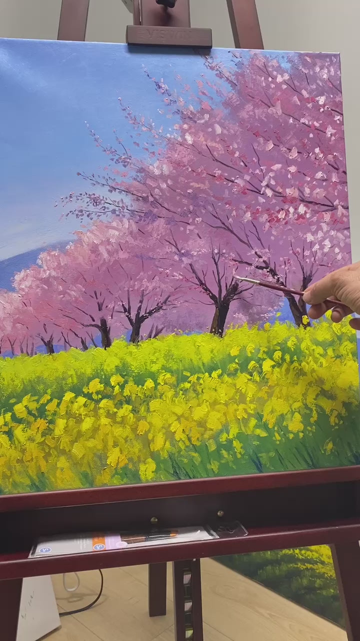 20"x24" Original oil painting on Stretched Canvas without frame Cherry blossoms mustard flower