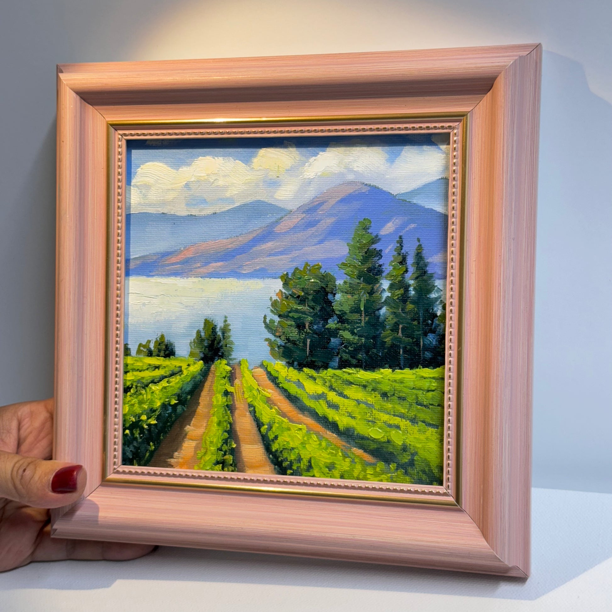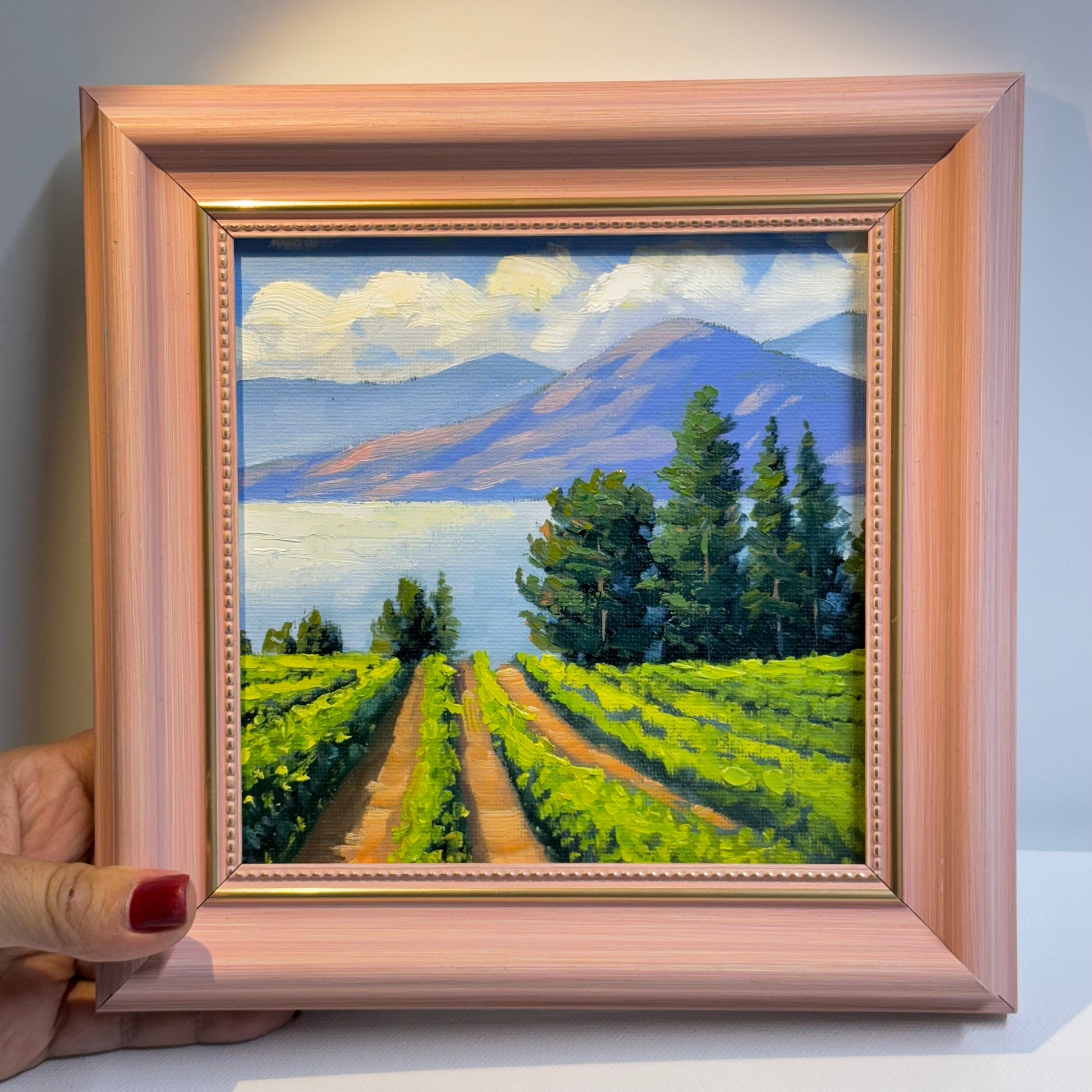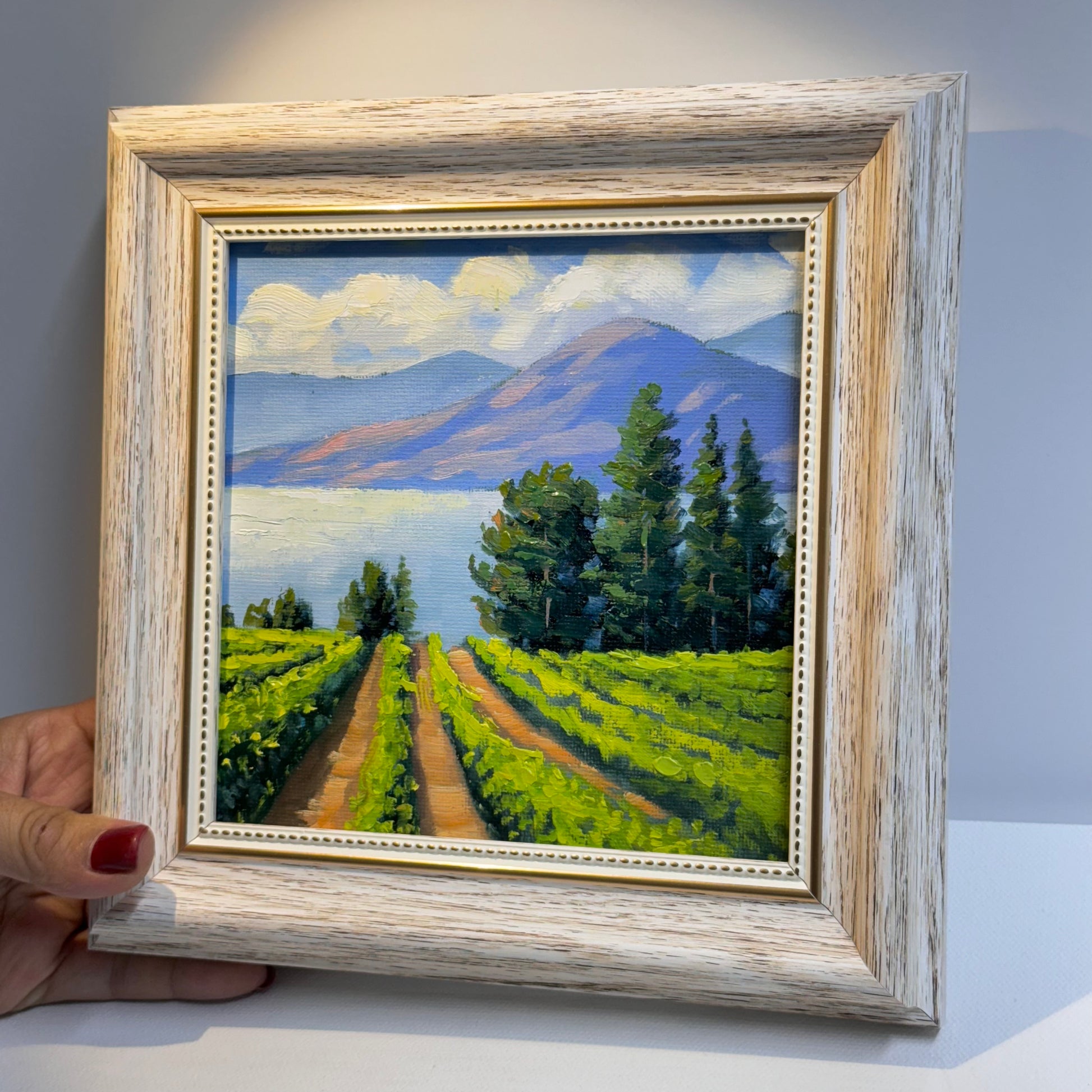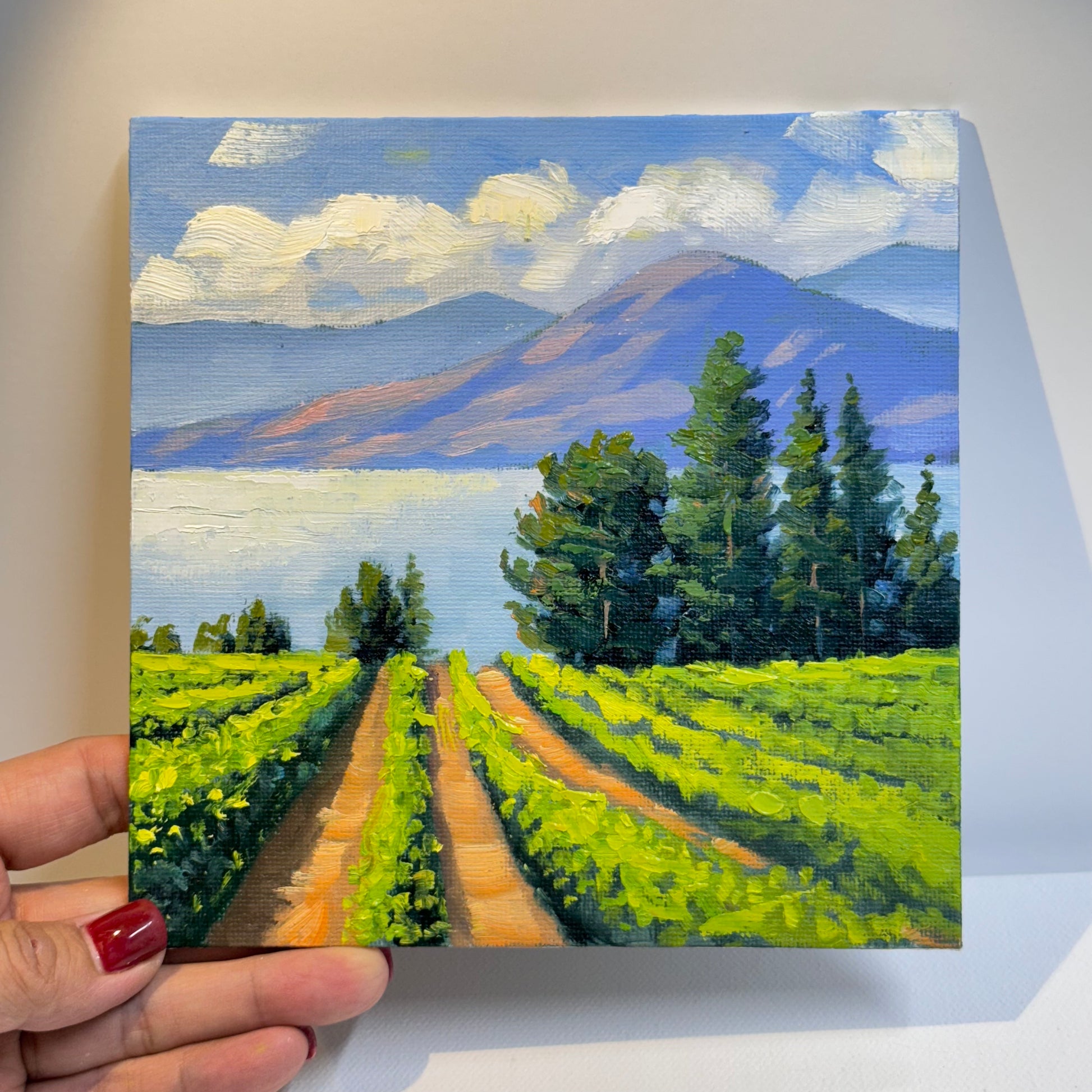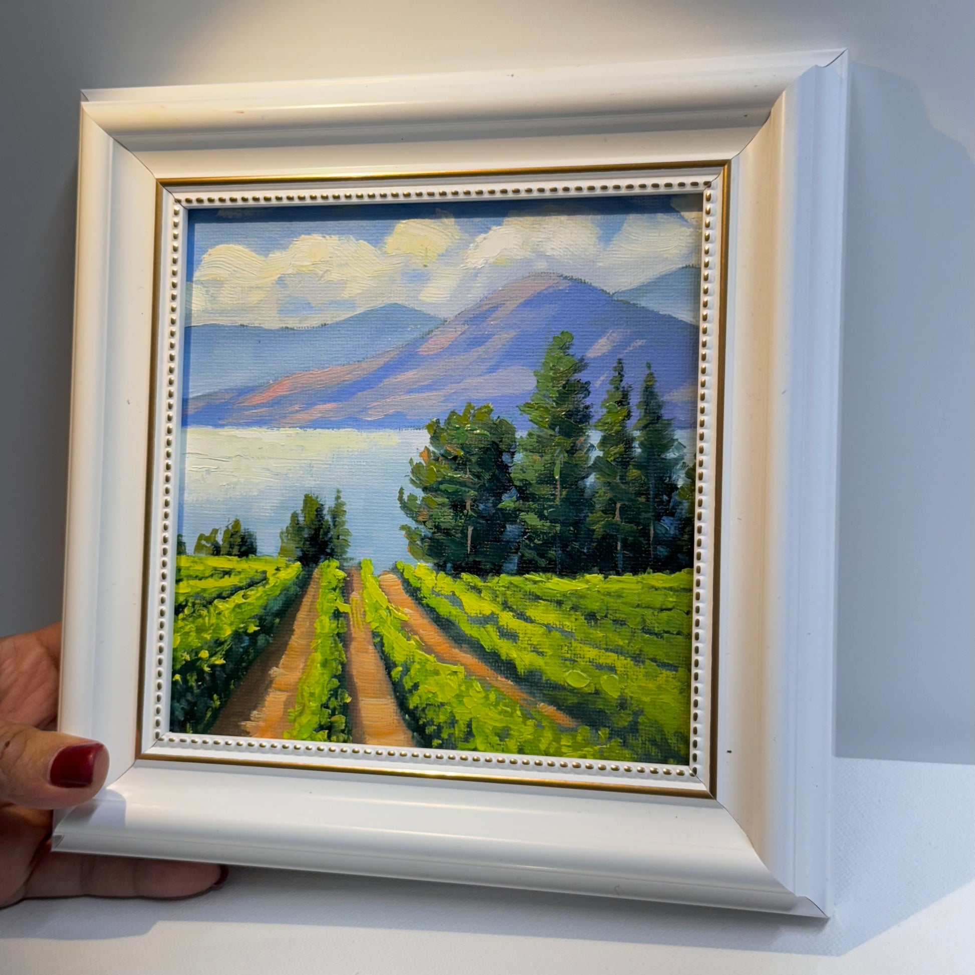 6"x6" Kelowna Winery Landscape - Original Oil Painting on canvas panel | Hand-Painted Okanagan Vineyard Art