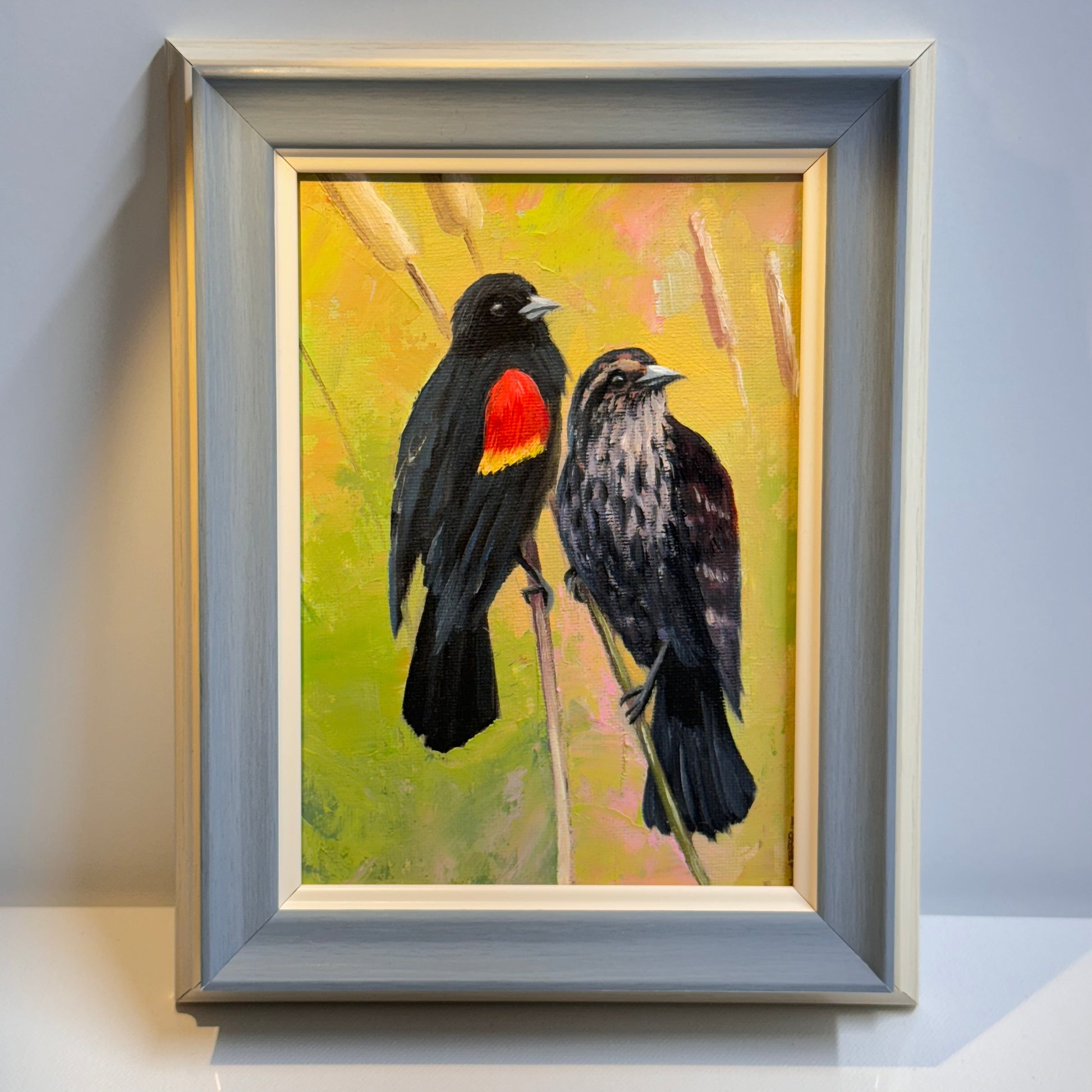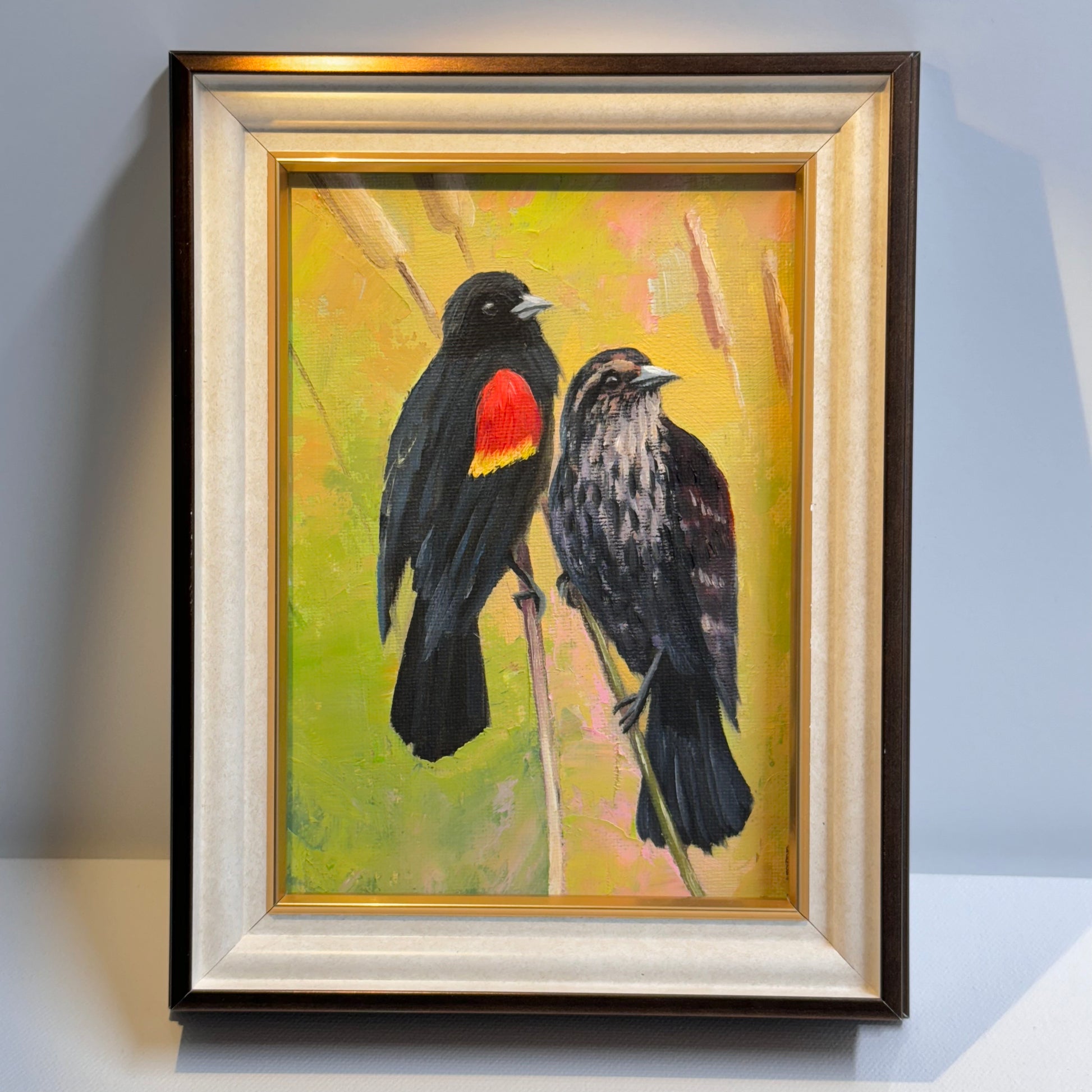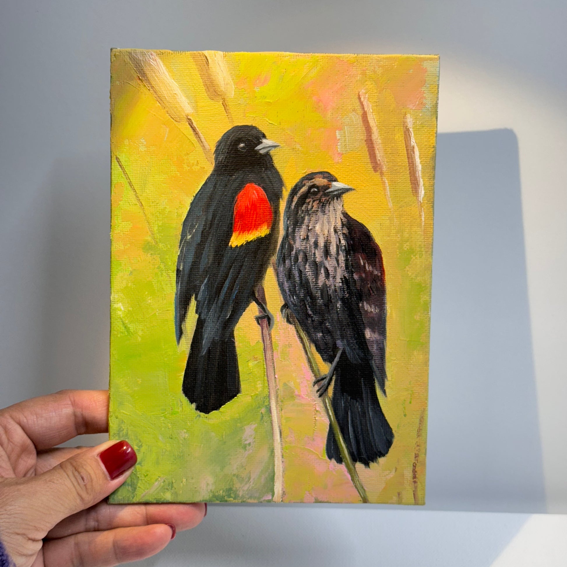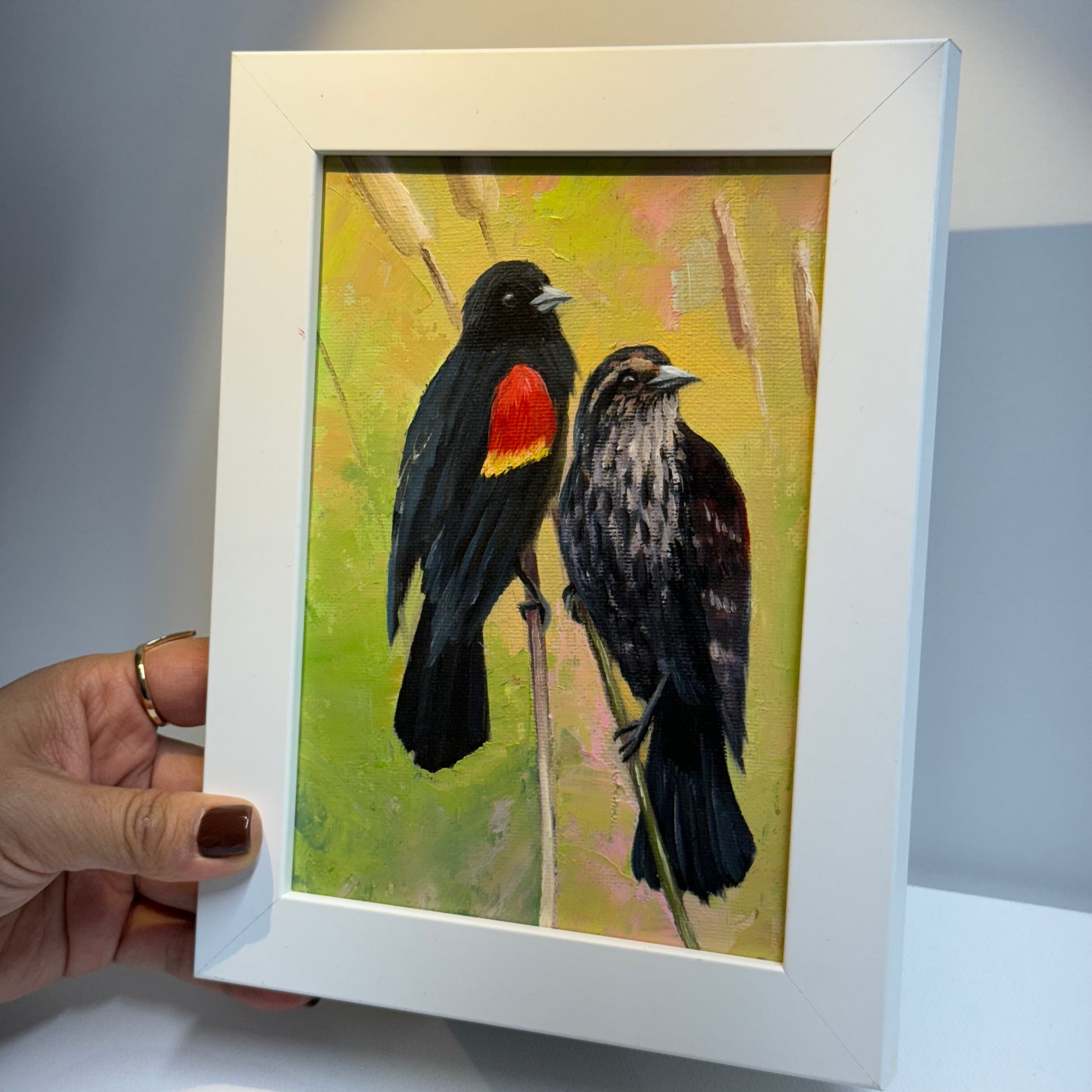 5"x7" Red-Winged Blackbird Pair - Original Oil Painting | Hand-Painted Bird Art for Home Decor